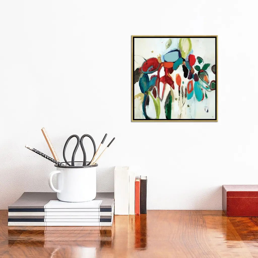 Icanvas "Floral Hints" By Lisa Ridgers Framed Canvas Print - Gold - 26x26