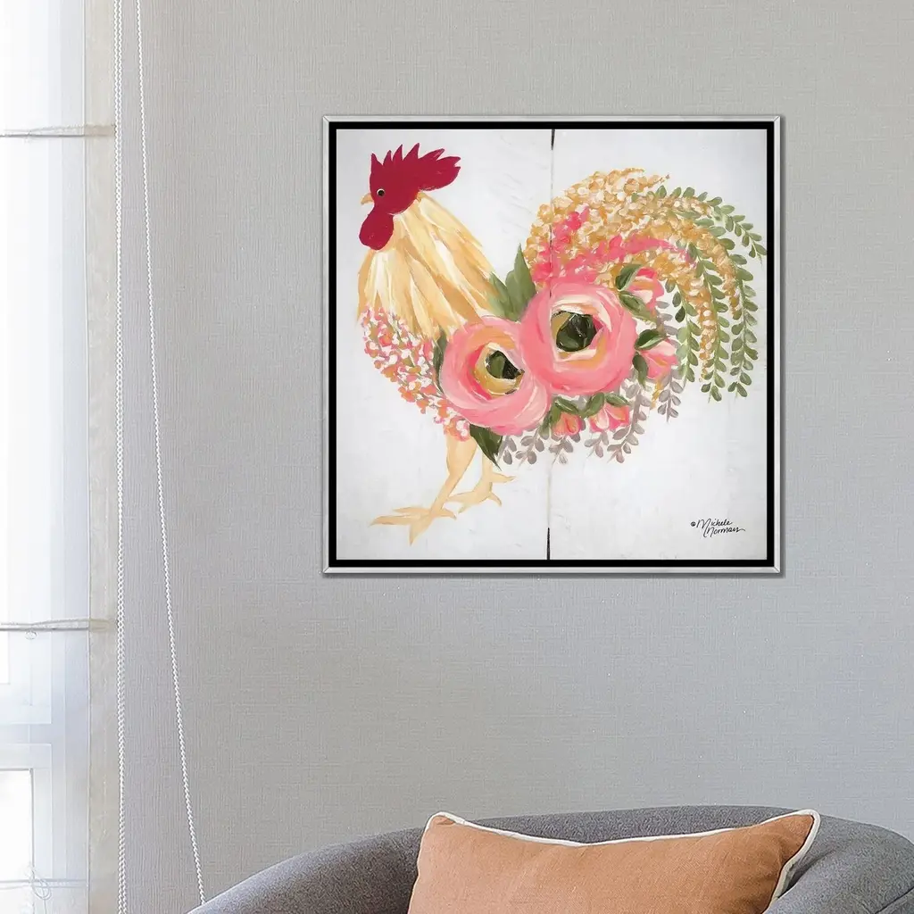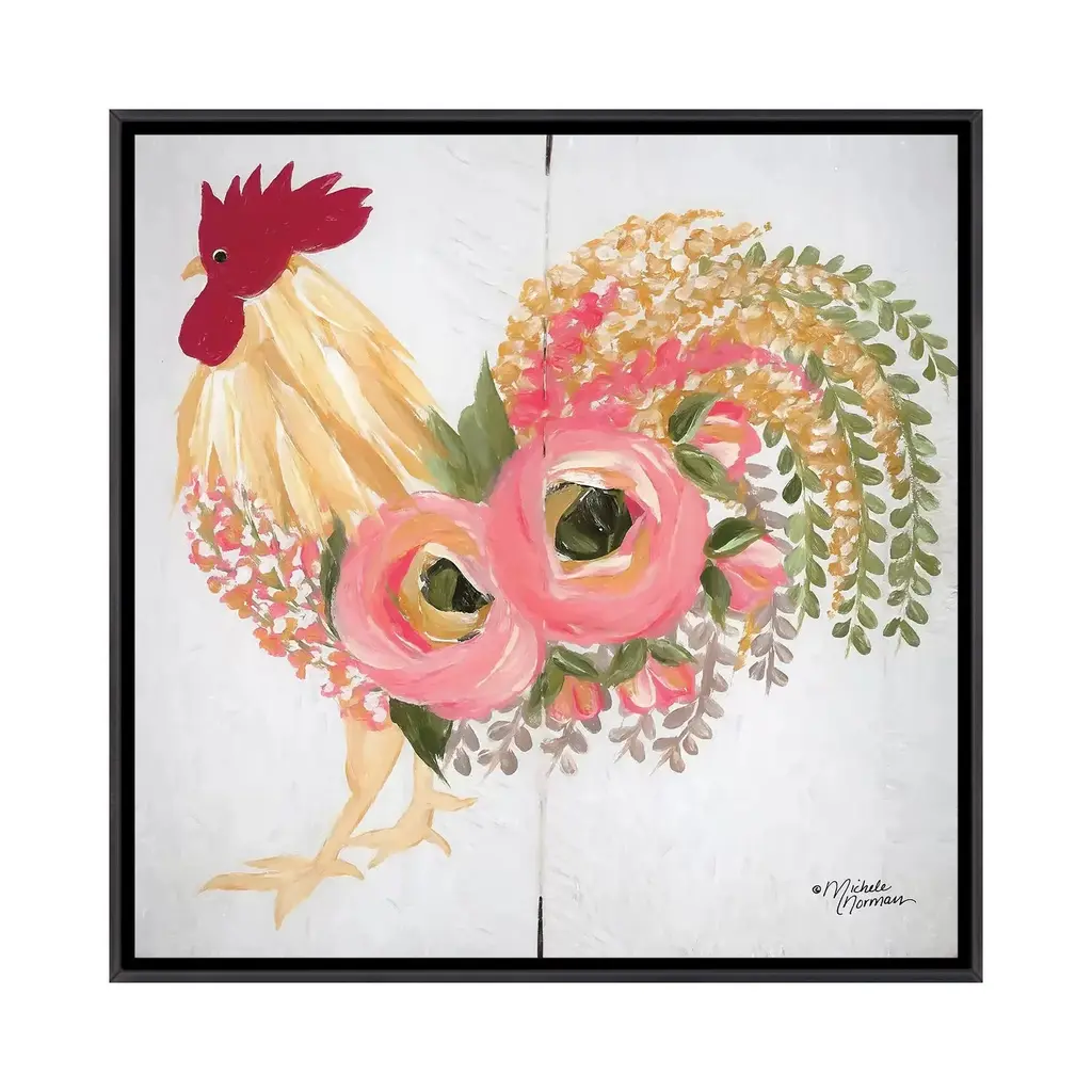 Icanvas "Floral Rooster On White" By Michele Norman Framed - Charcoal - 26x26