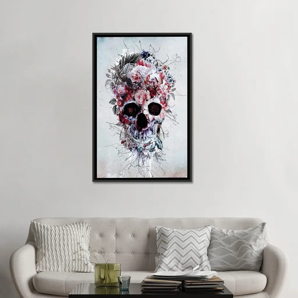 Icanvas "Floral Skull Rpe" By Riza Peker Framed Canvas Print - Gold - 40x26
