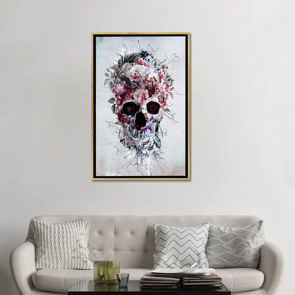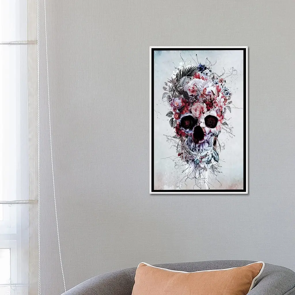 Icanvas "Floral Skull Rpe" By Riza Peker Framed Canvas Print - White - 40x26