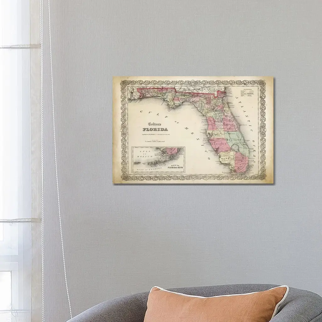 Icanvas "Florida Map, 1863" By Patentprintstore Canvas Print - 18x26x1.5