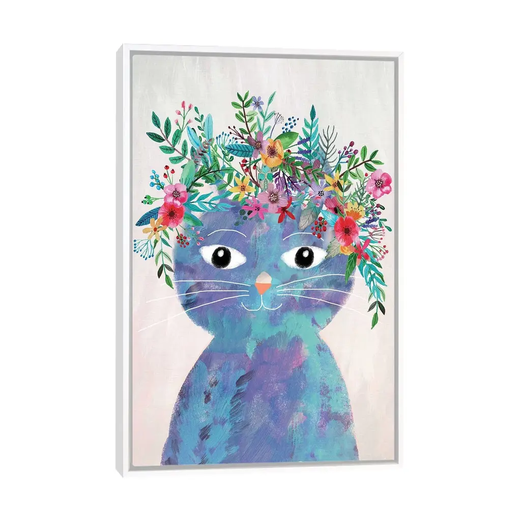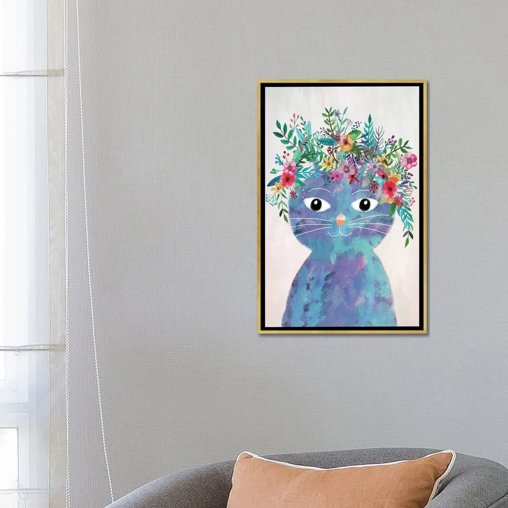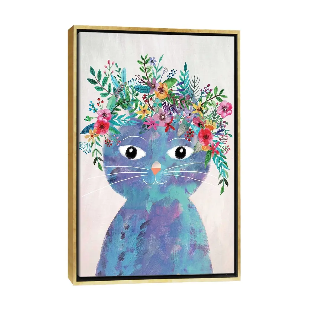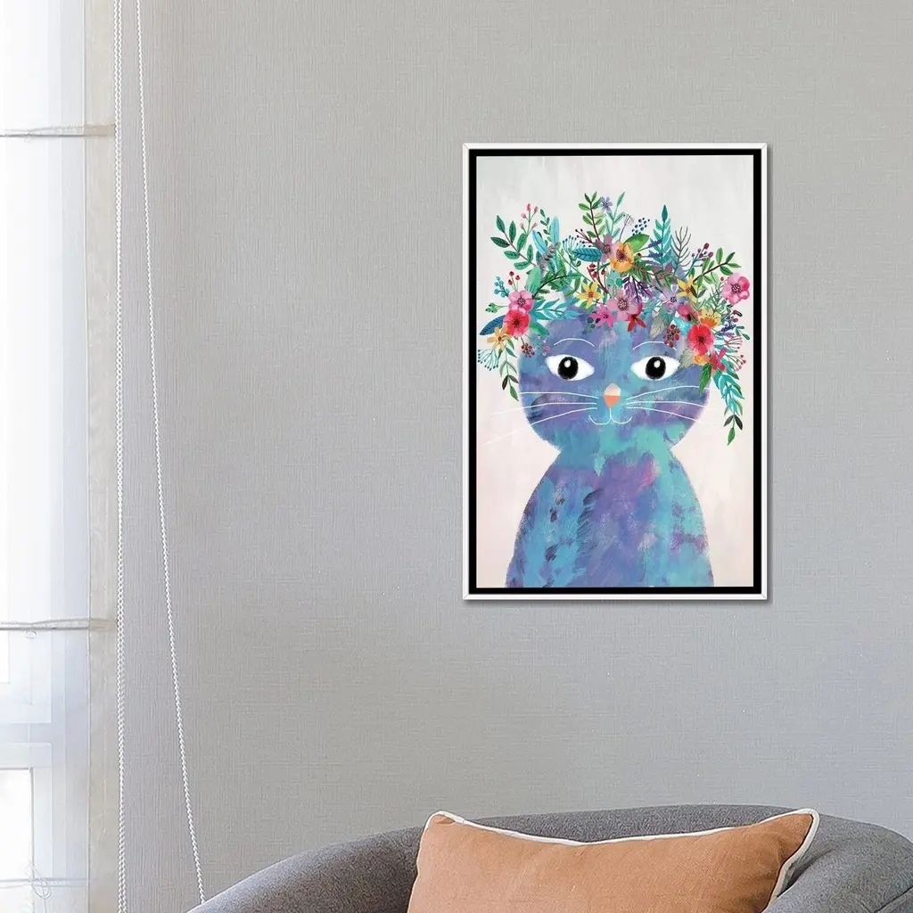Icanvas "Flower Cat Ii" By Mia Charro Framed Canvas Print - Black - 26x18