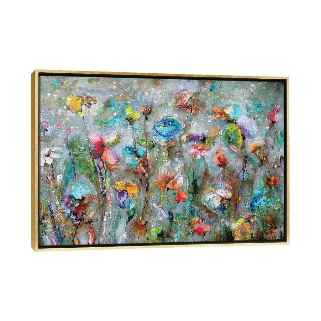 Icanvas "Flowers By Dawn" By Studio Paint-Ing Framed Canvas Print - Black - 18x26