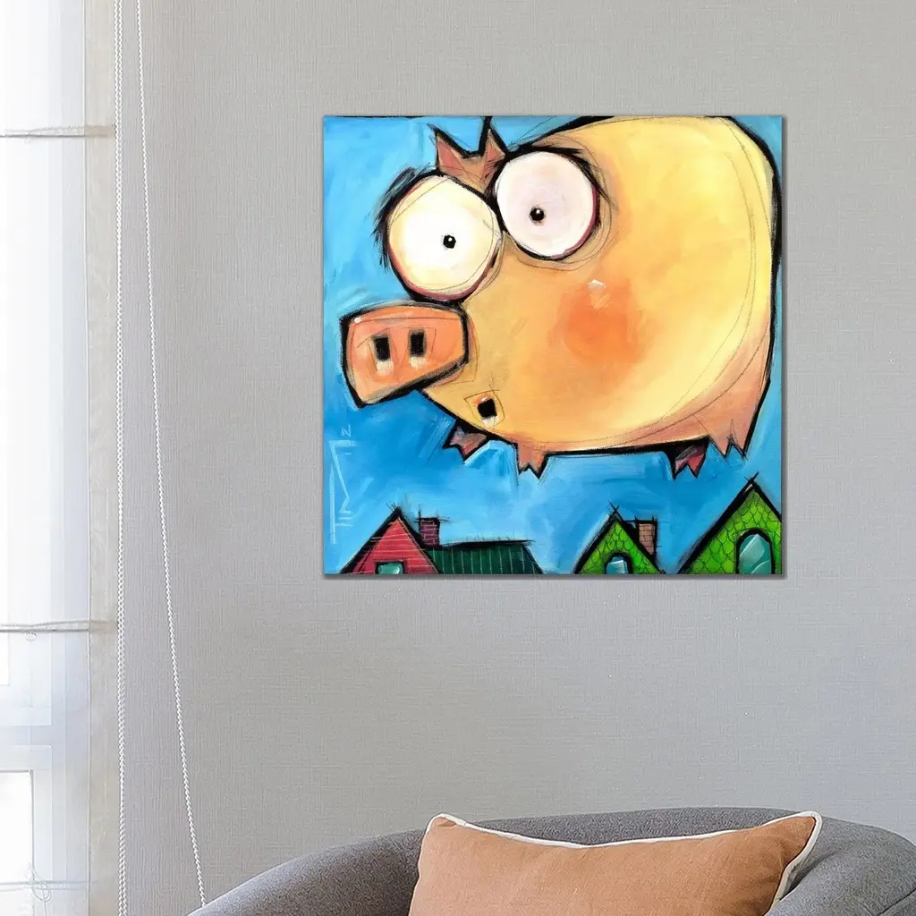 Icanvas "Flying Pig First Flight" By Tim Nyberg Canvas Print - 12x12x1.5