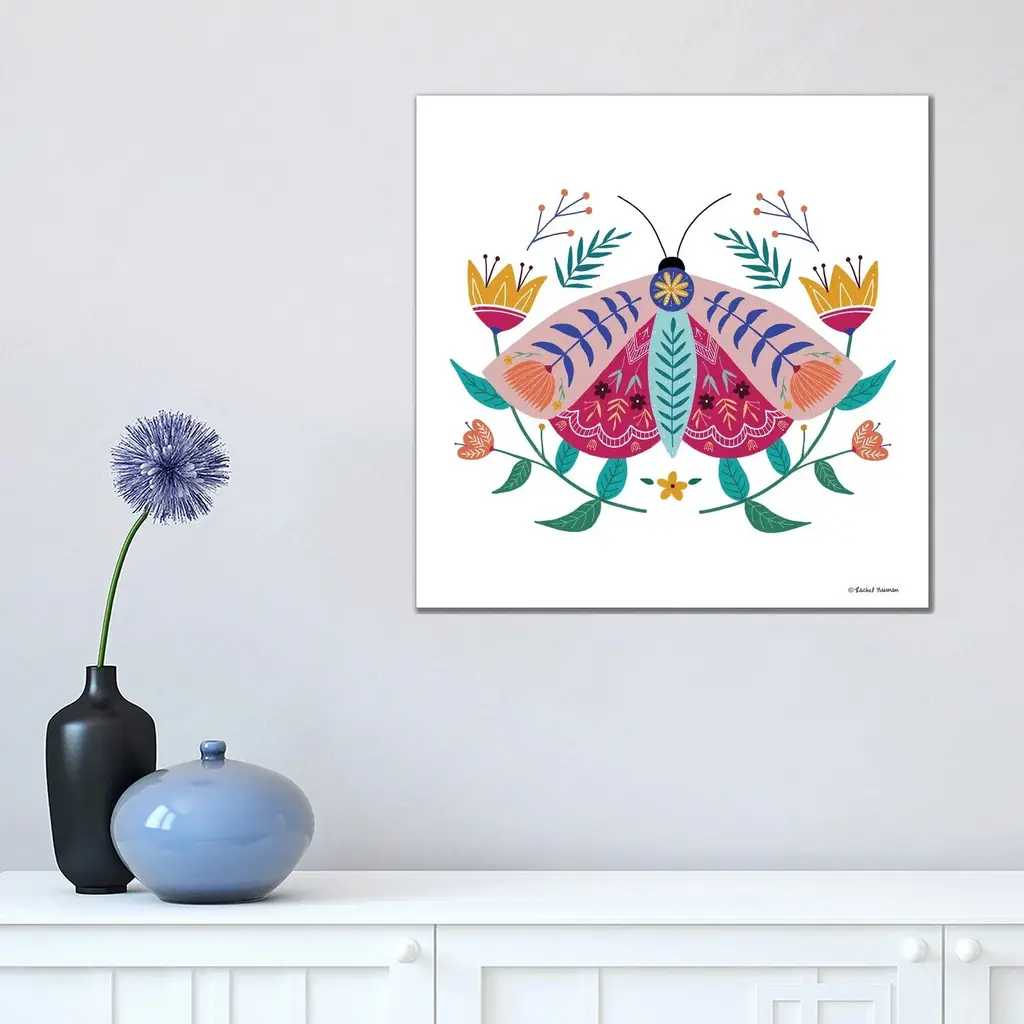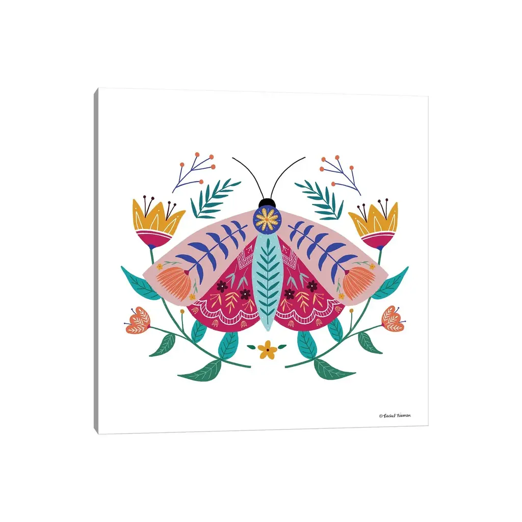 Icanvas "Folk Art Moth" By Rachel Nieman Canvas Print - 12x12x1.5