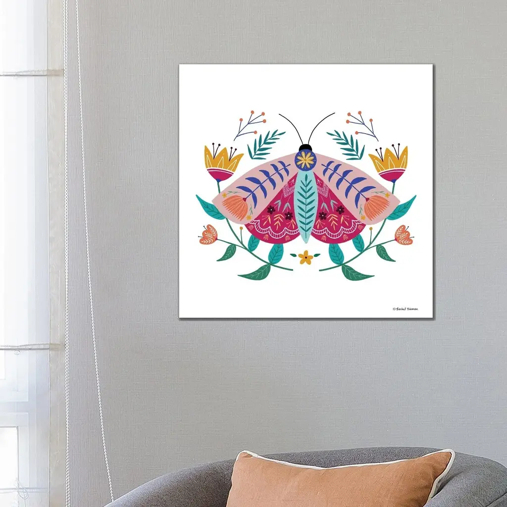Icanvas "Folk Art Moth" By Rachel Nieman Canvas Print - 18x18x1.5
