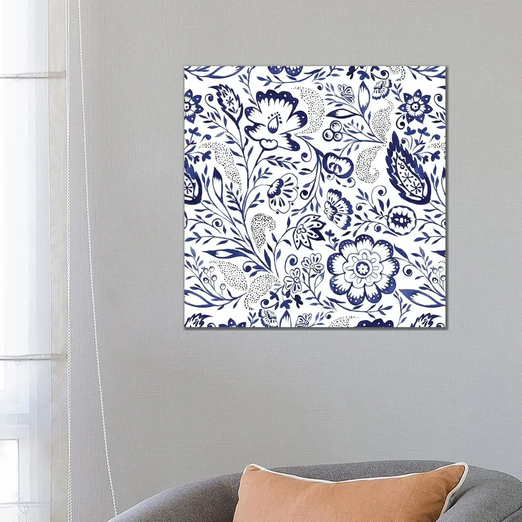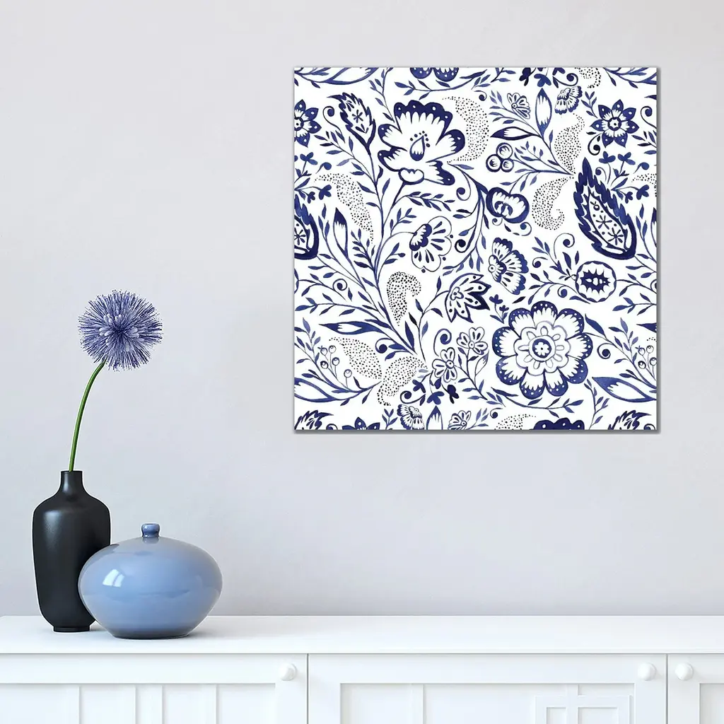 Icanvas "Folk Floral Indigo" By Jacqueline Maldonado Canvas Print - 12x12x0.75