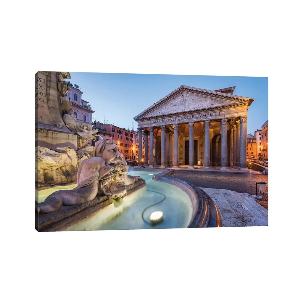 Icanvas "Fontana Del Pantheon And Pantheon At The Piazza Della Rotonda, Rome, Italy" By Jan Becke Canvas Print - 32x48x1.5