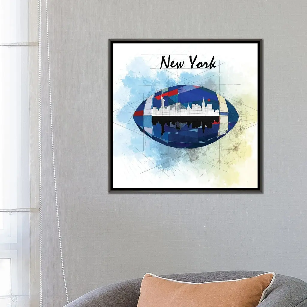 Icanvas "Football New York Giants" By Katia Skye Framed - Ebony - 12x12