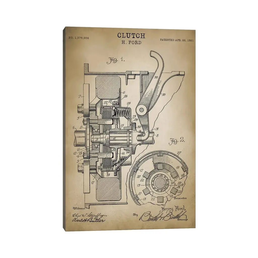 Icanvas "Ford Clutch" By Patentprintstore Canvas Print - 40x26x1.5