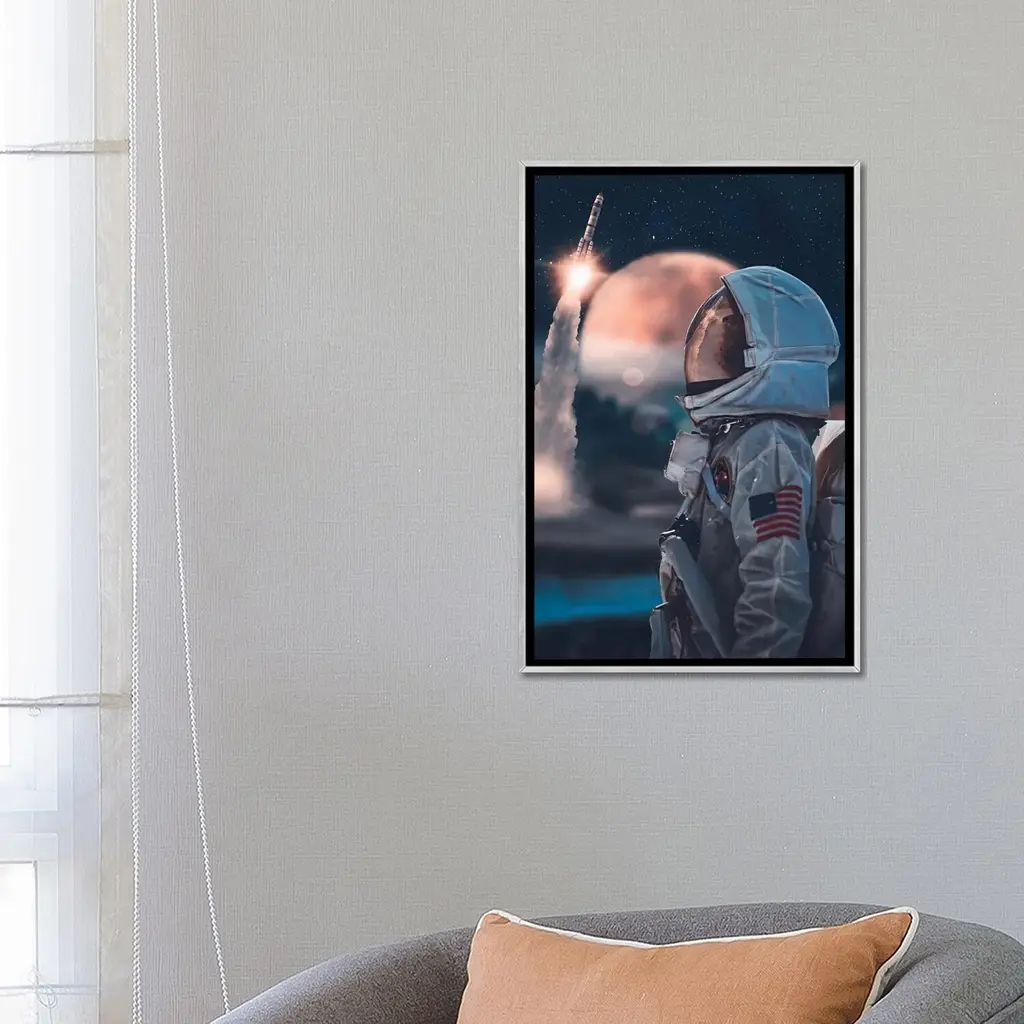 Icanvas "Forgotten Astronaut And Rocket Launch" By Gen Z Framed - Ebony - 26x18