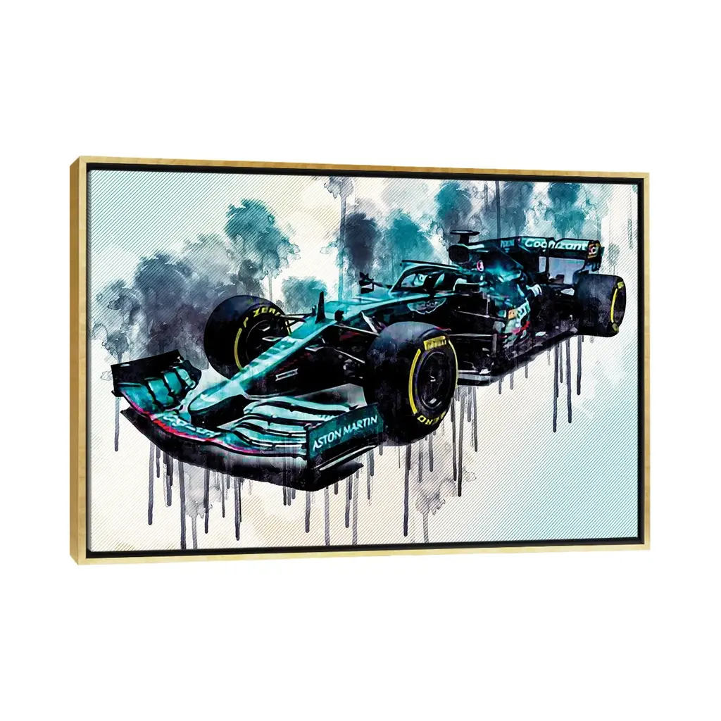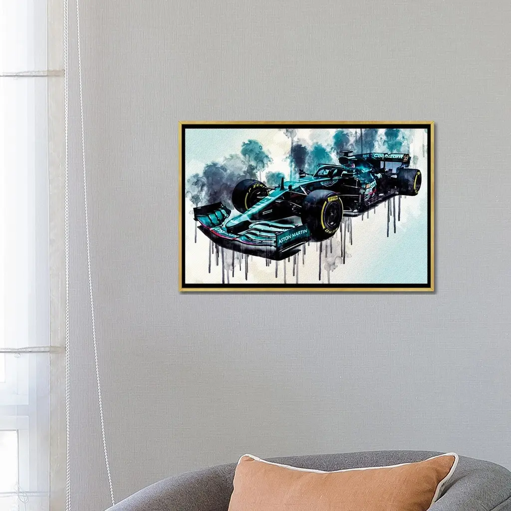 Icanvas "Formula 1 2021 Aston Martin Amr21 Front View Exterior F1 2021 Race Cars" By Sissy Angelastro Framed Canvas Print - Black - 18x26