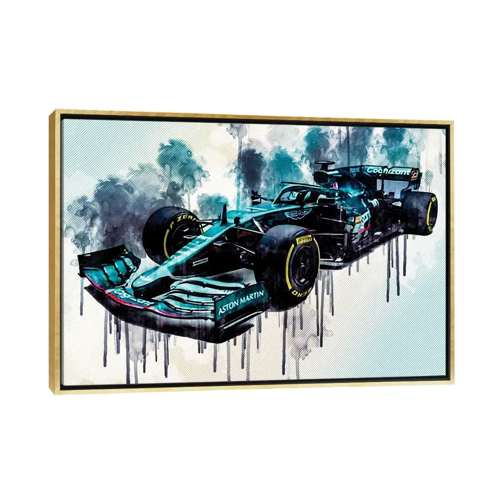 Icanvas "Formula 1 2021 Aston Martin Amr21 Front View Exterior F1 2021 Race Cars" By Sissy Angelastro Framed Canvas Print - White - 26x40