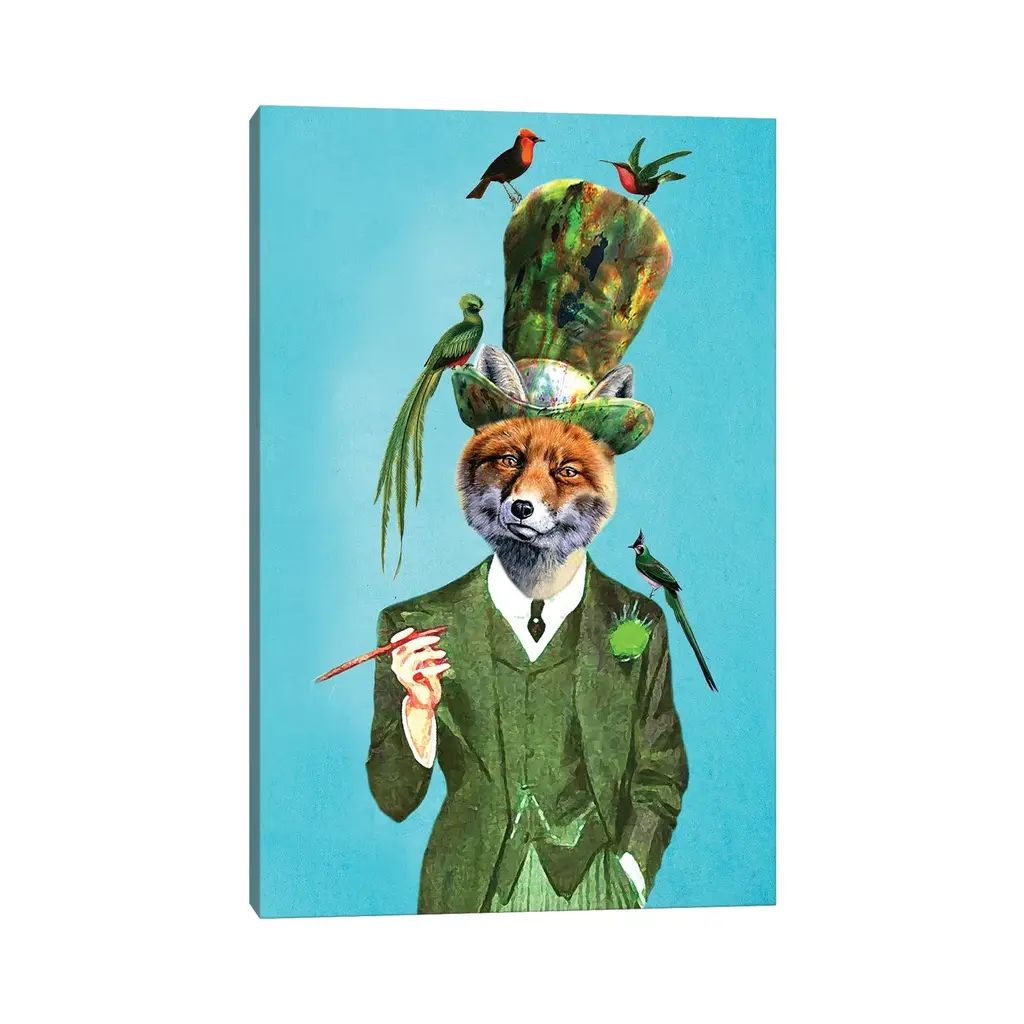 Icanvas "Fox With Hat And Birds" By Coco De Paris Canvas Print - 26x18x1.5