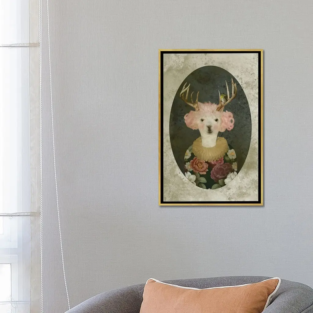 Icanvas "Francine Portrait- Light Background" By Caroline Keslassy Framed - Gold - 26x18