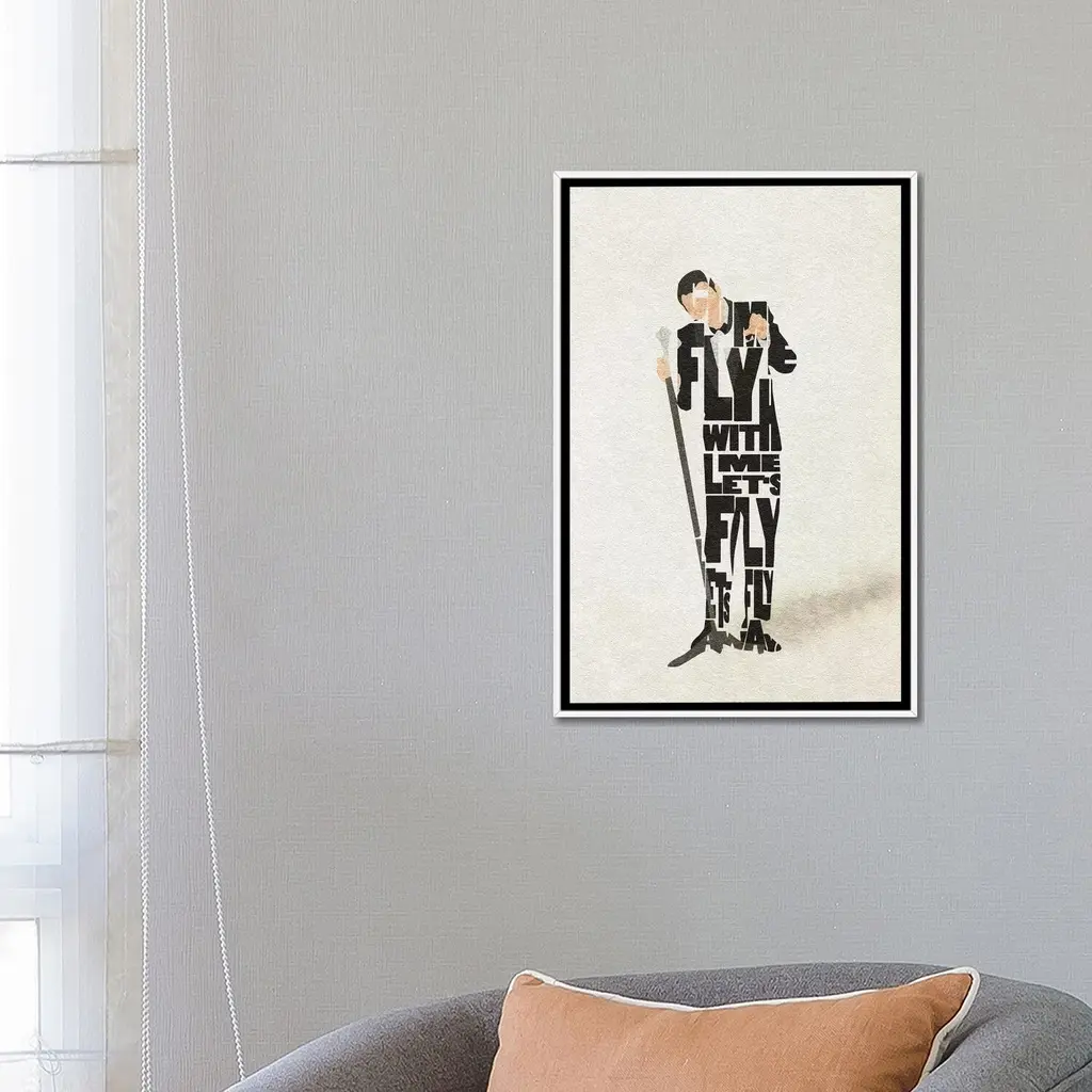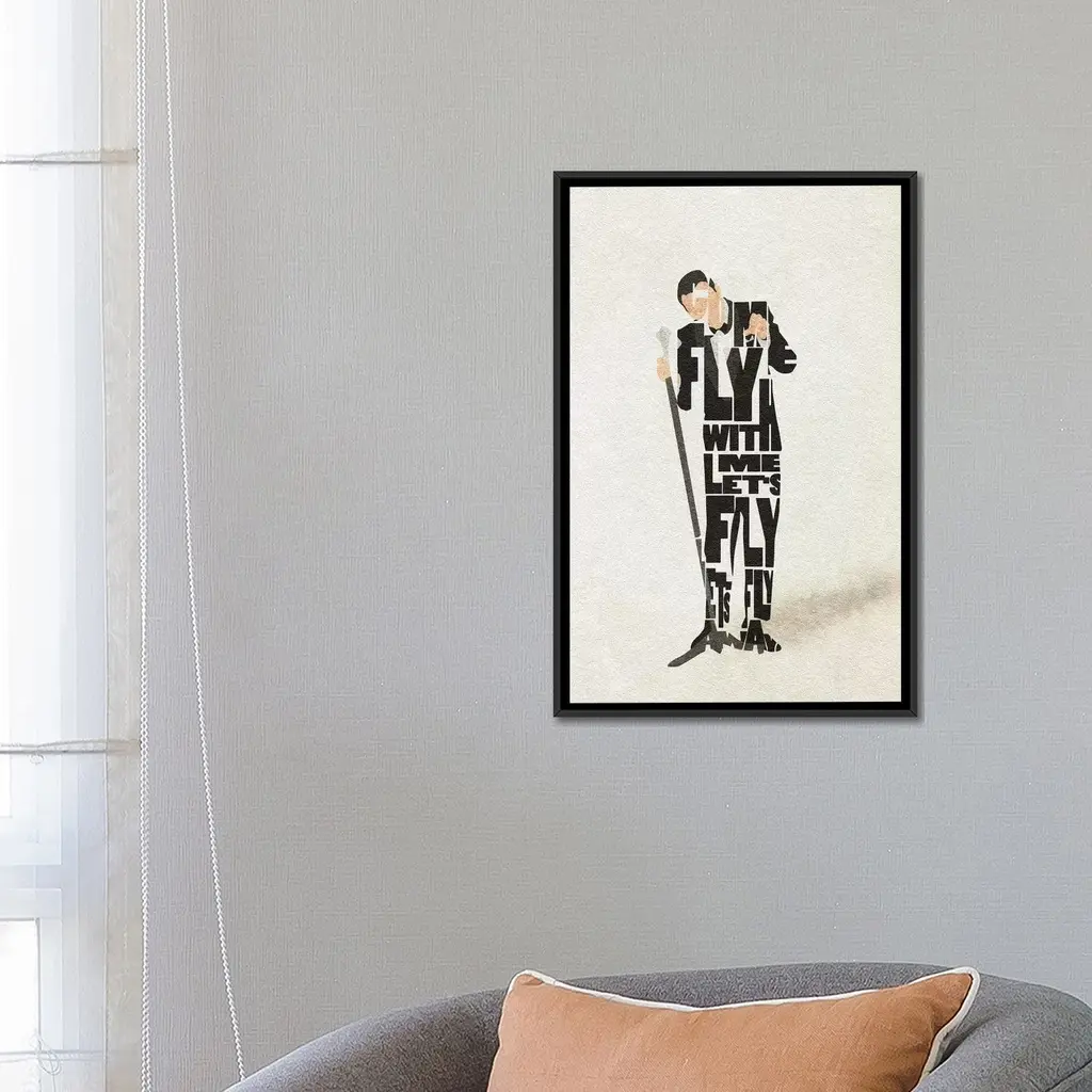 Icanvas "Frank Sinatra" By Ayse Deniz Akerman Framed Canvas Print - Black - 48x32