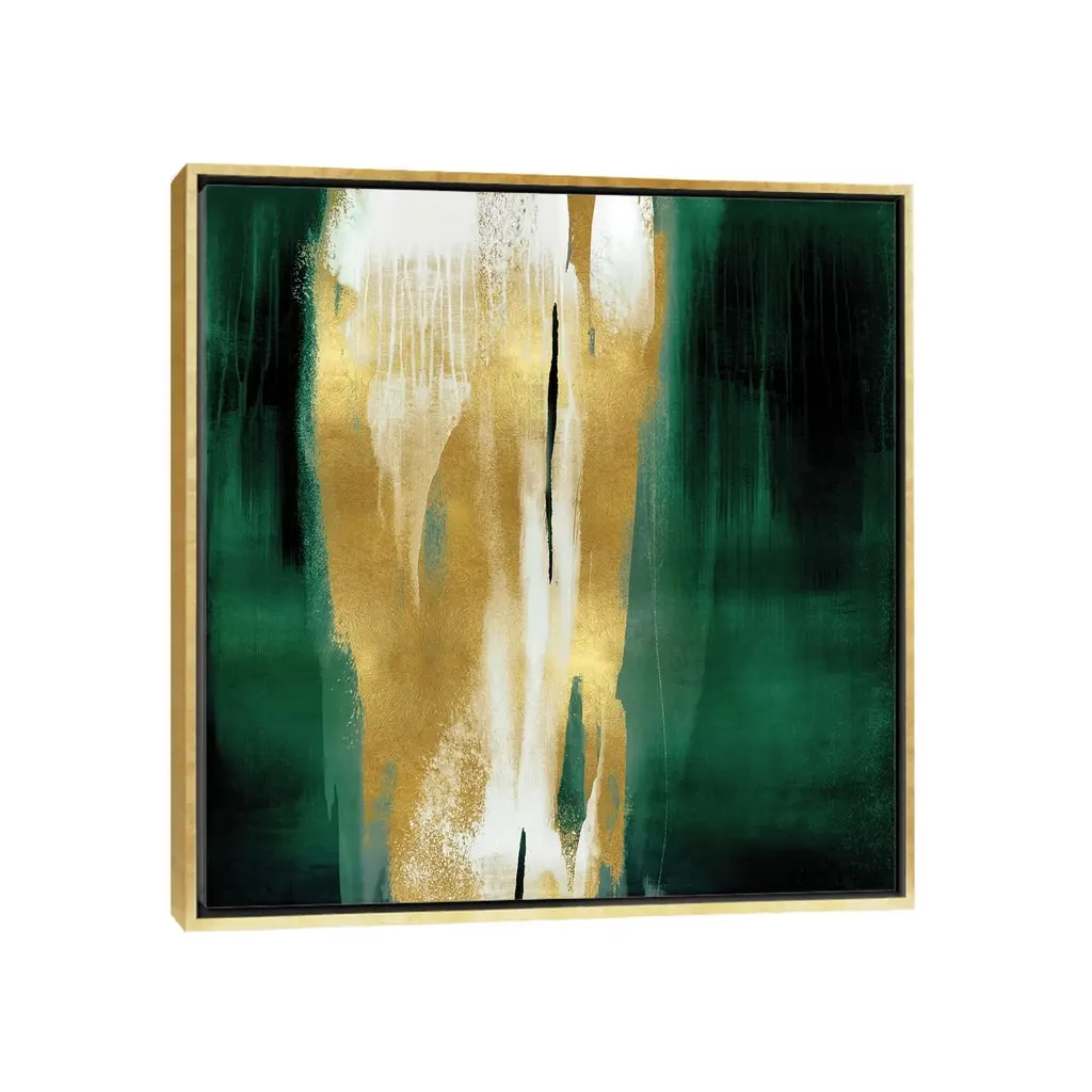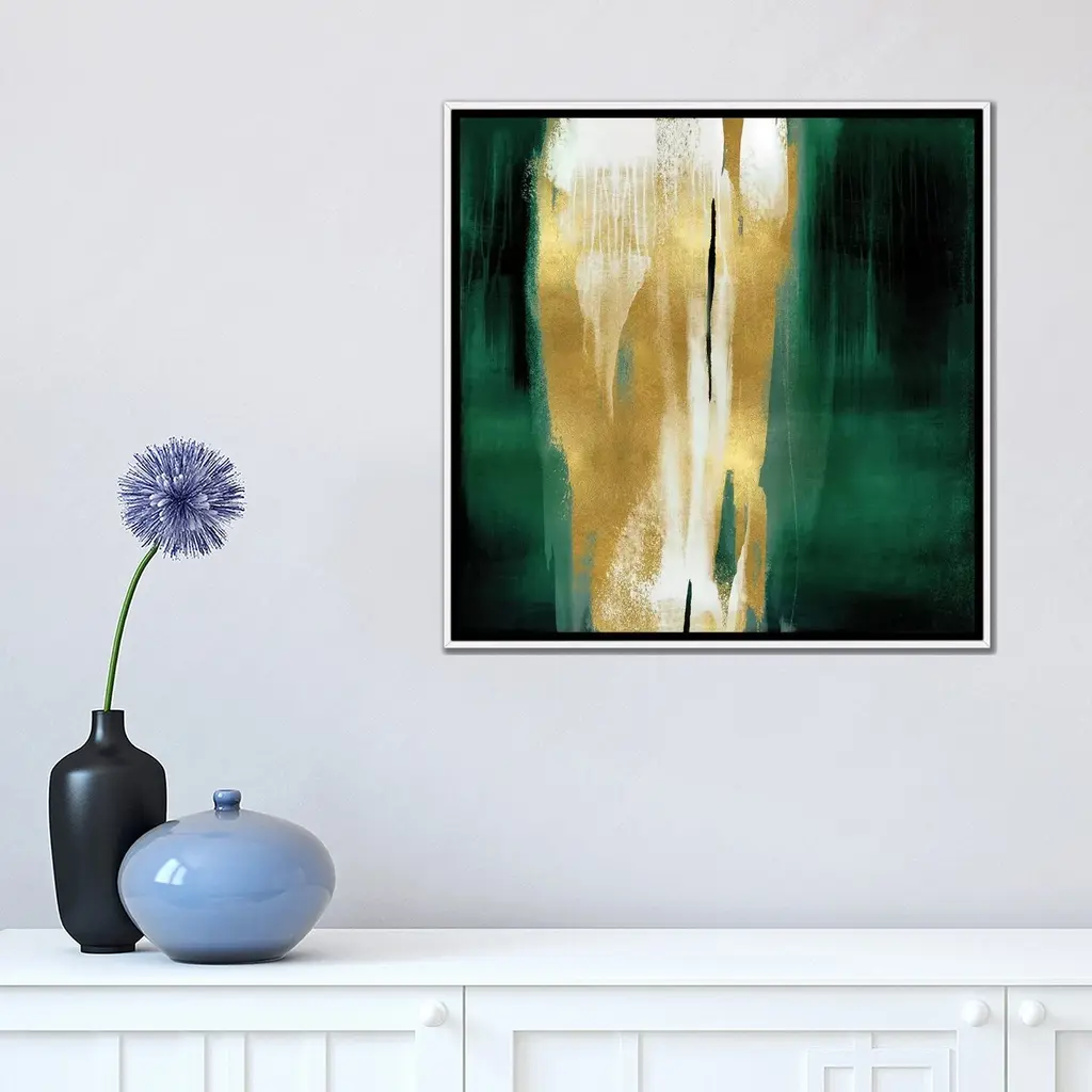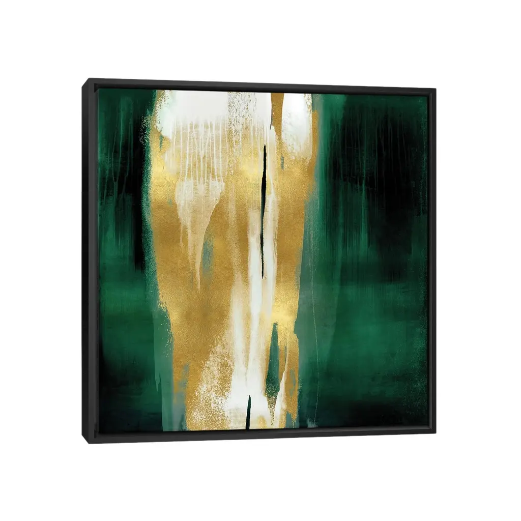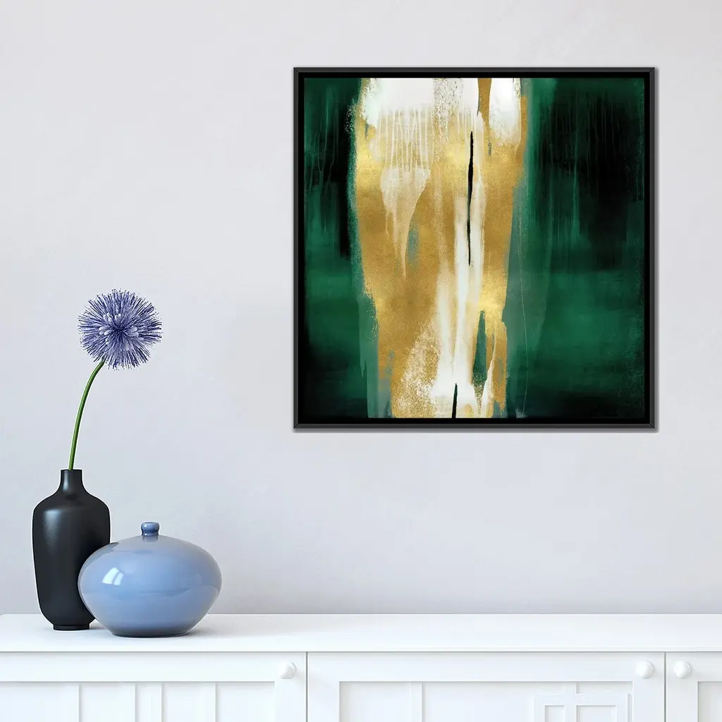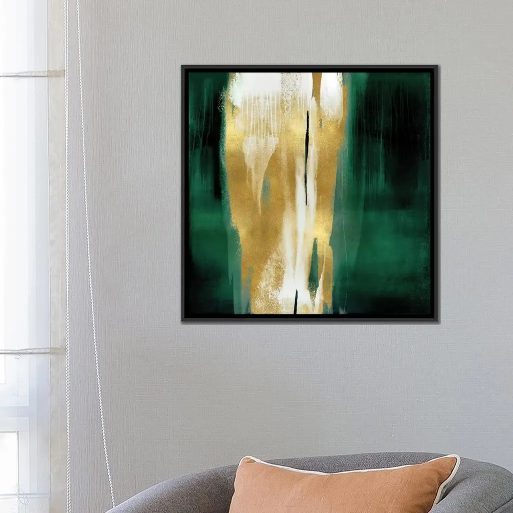 Icanvas "Free Fall Emerald With Gold I" By Christine Wright Framed Canvas Print - Black - 12x12
