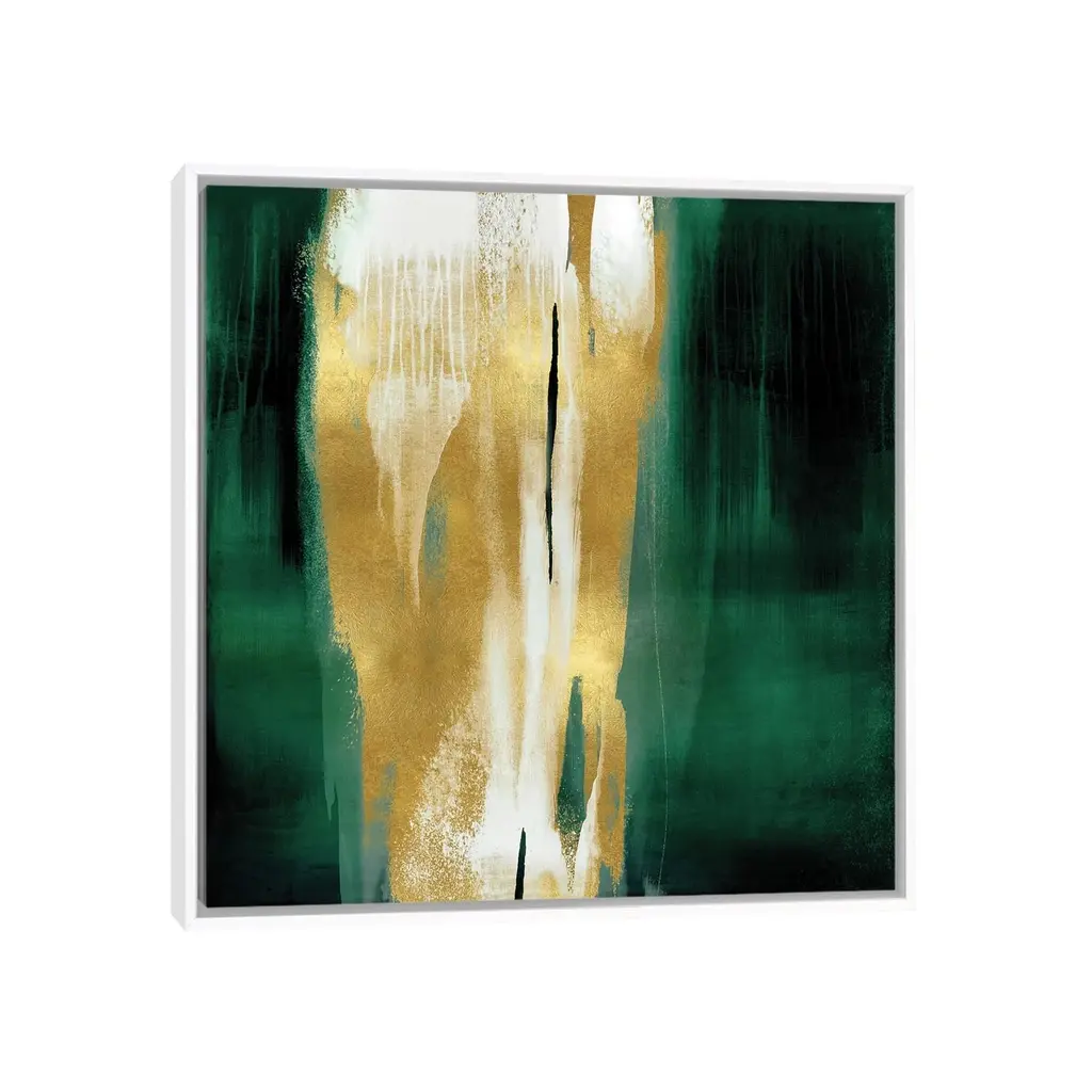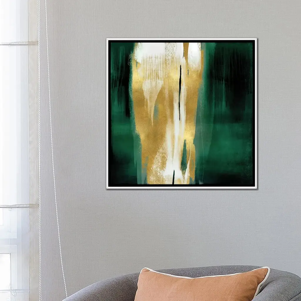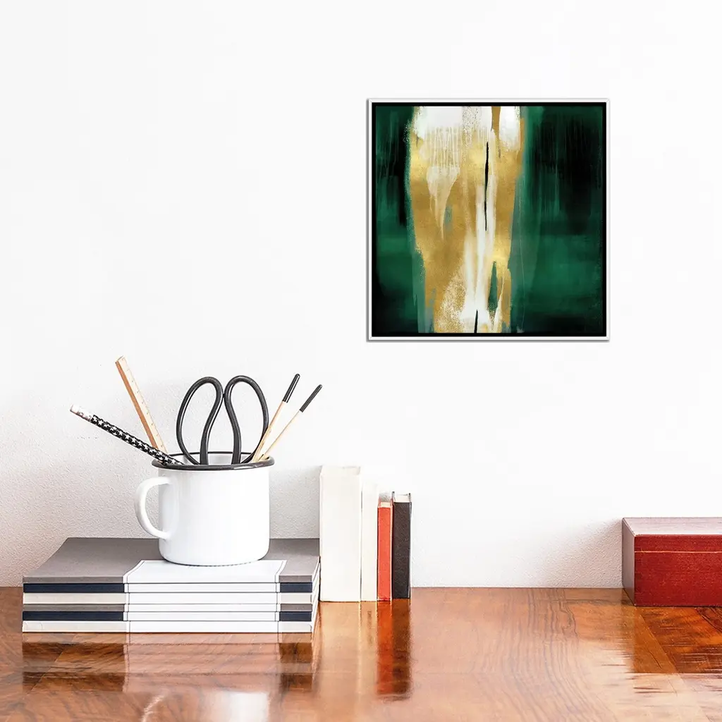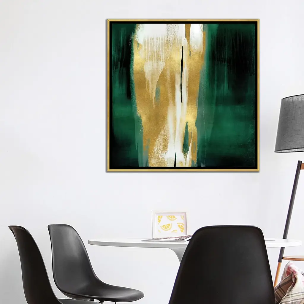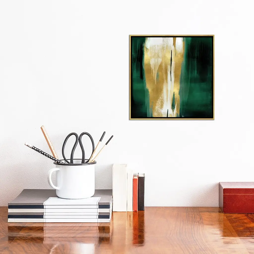 Icanvas "Free Fall Emerald With Gold I" By Christine Wright Framed Canvas Print - Black - 12x12