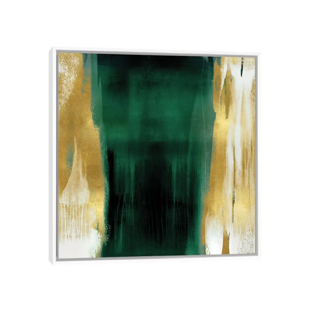 Icanvas "Free Fall Emerald With Gold Ii" By Christine Wright Framed Canvas Print - White - 12x12