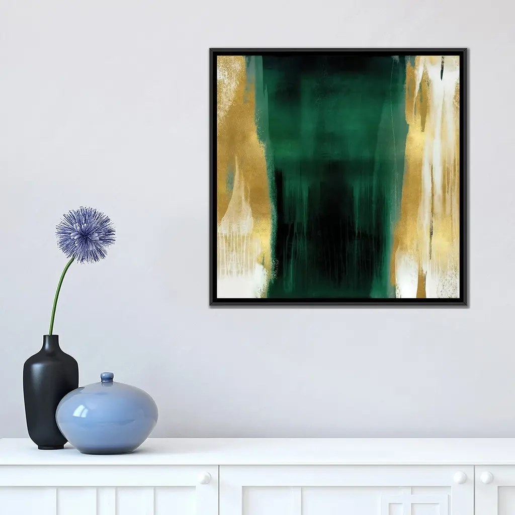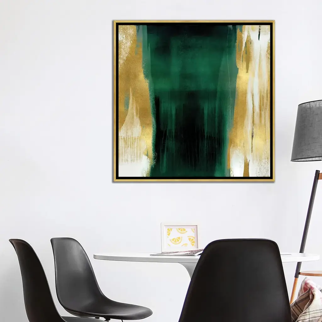 Icanvas "Free Fall Emerald With Gold Ii" By Christine Wright Framed Canvas Print - White - 18x18
