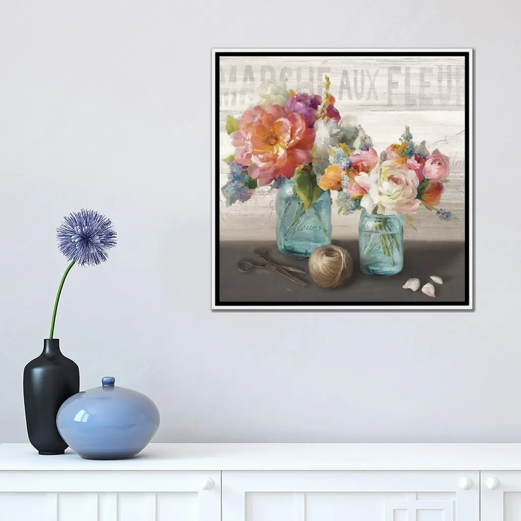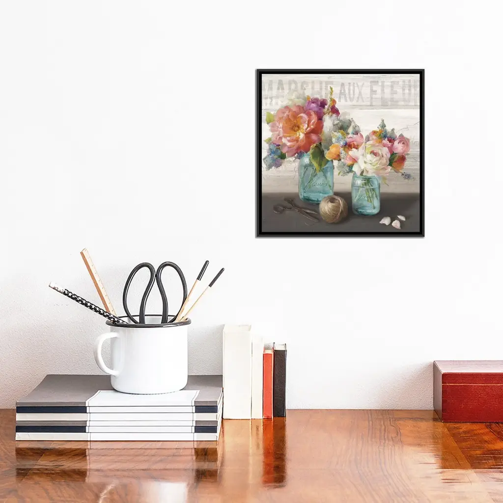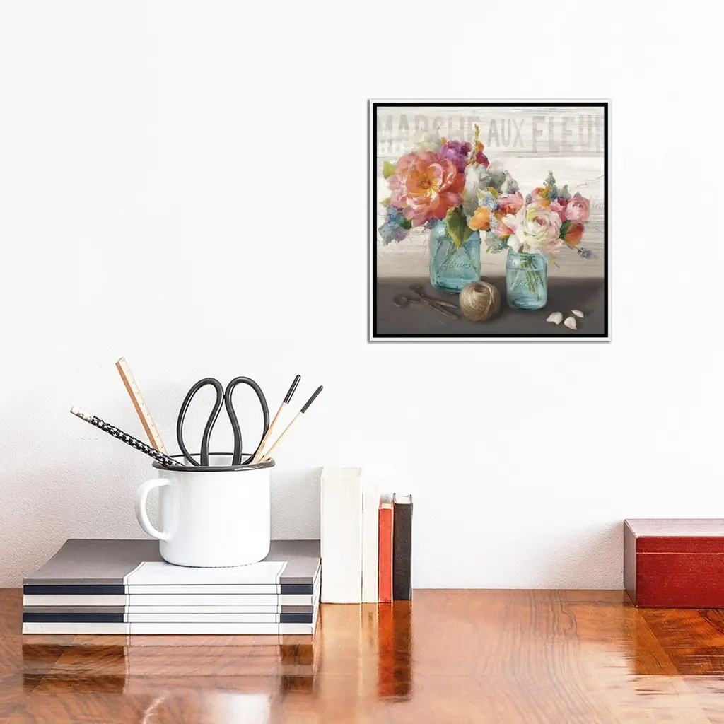 Icanvas "French Cottage Bouquet Iii" By Danhui Nai Framed Canvas Print - White - 12x12