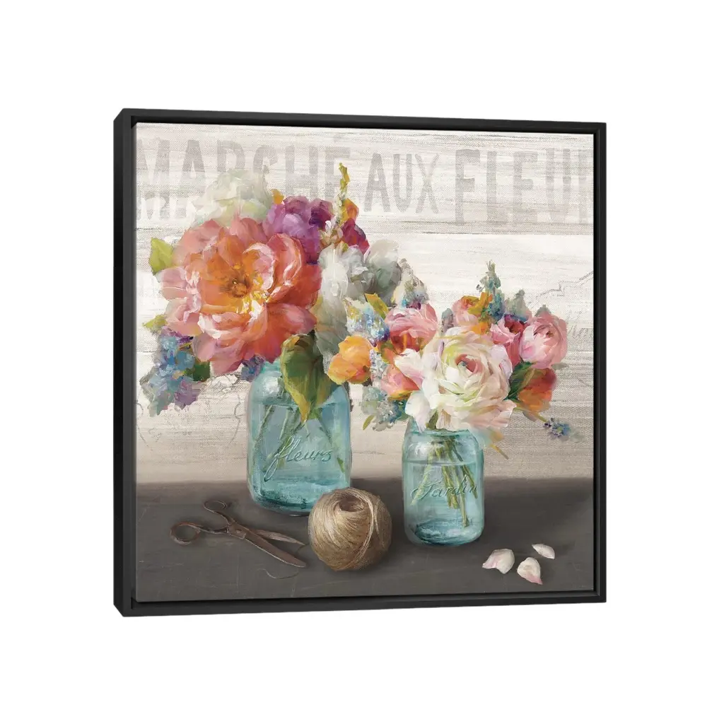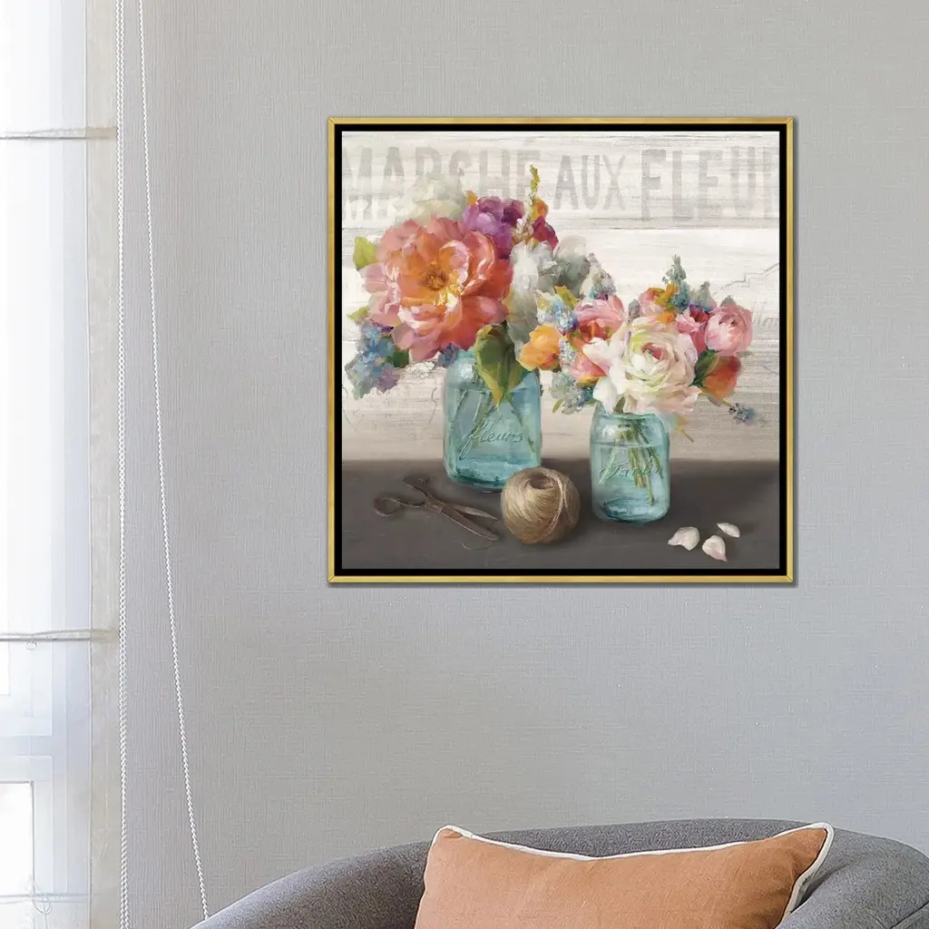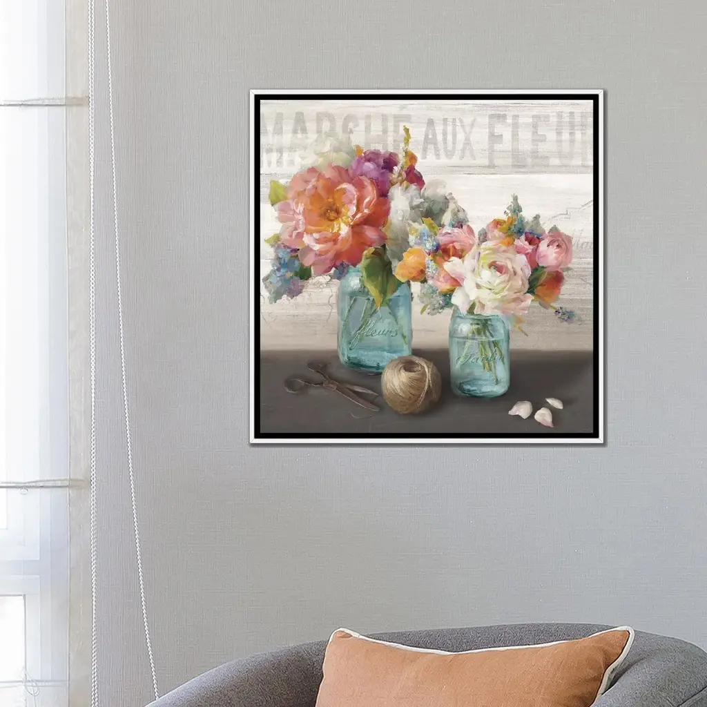Icanvas "French Cottage Bouquet Iii" By Danhui Nai Framed Canvas Print - White - 12x12