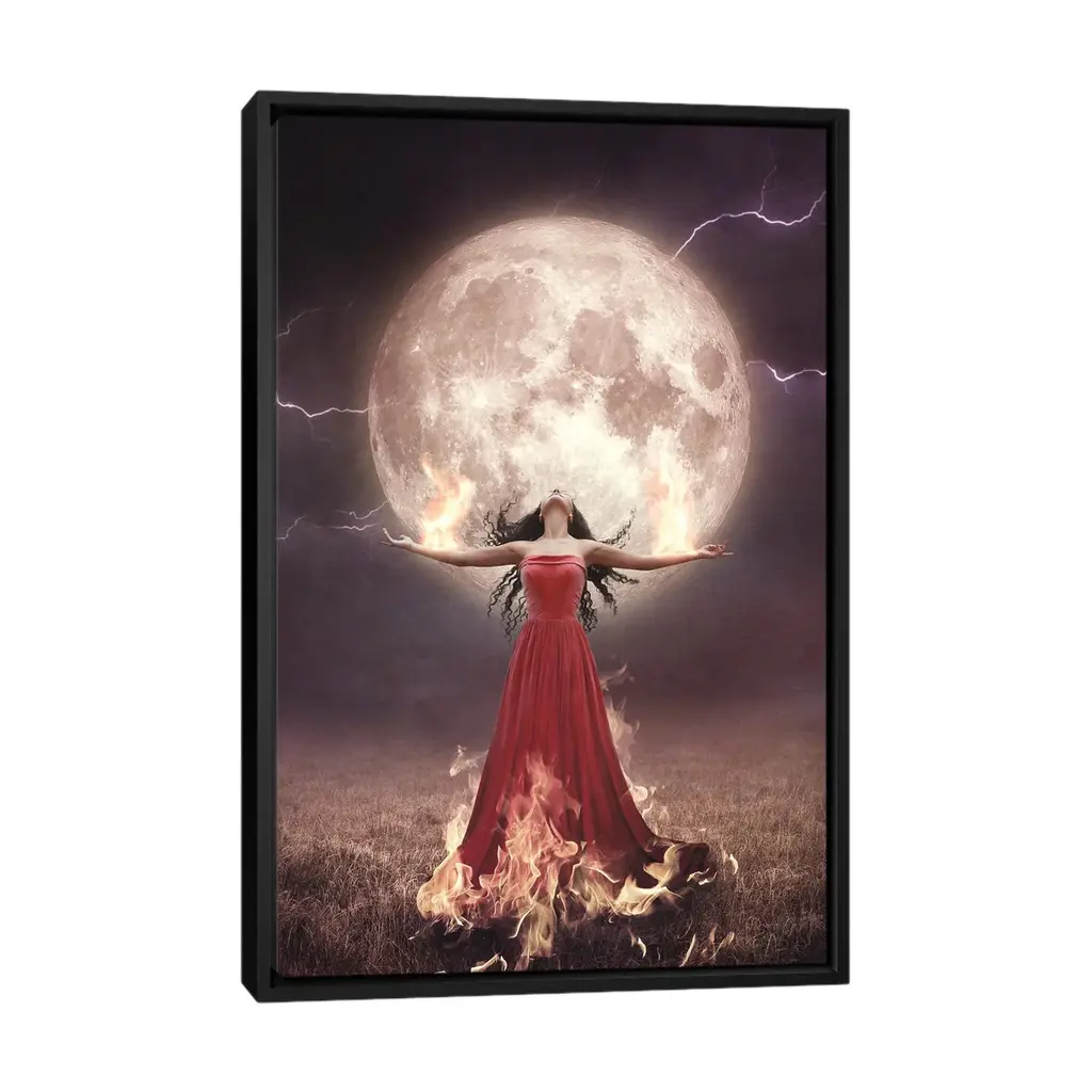Icanvas "Full Moon In Aries" By Midnight Moon Visuals Framed Canvas Print - Gold - 48x32