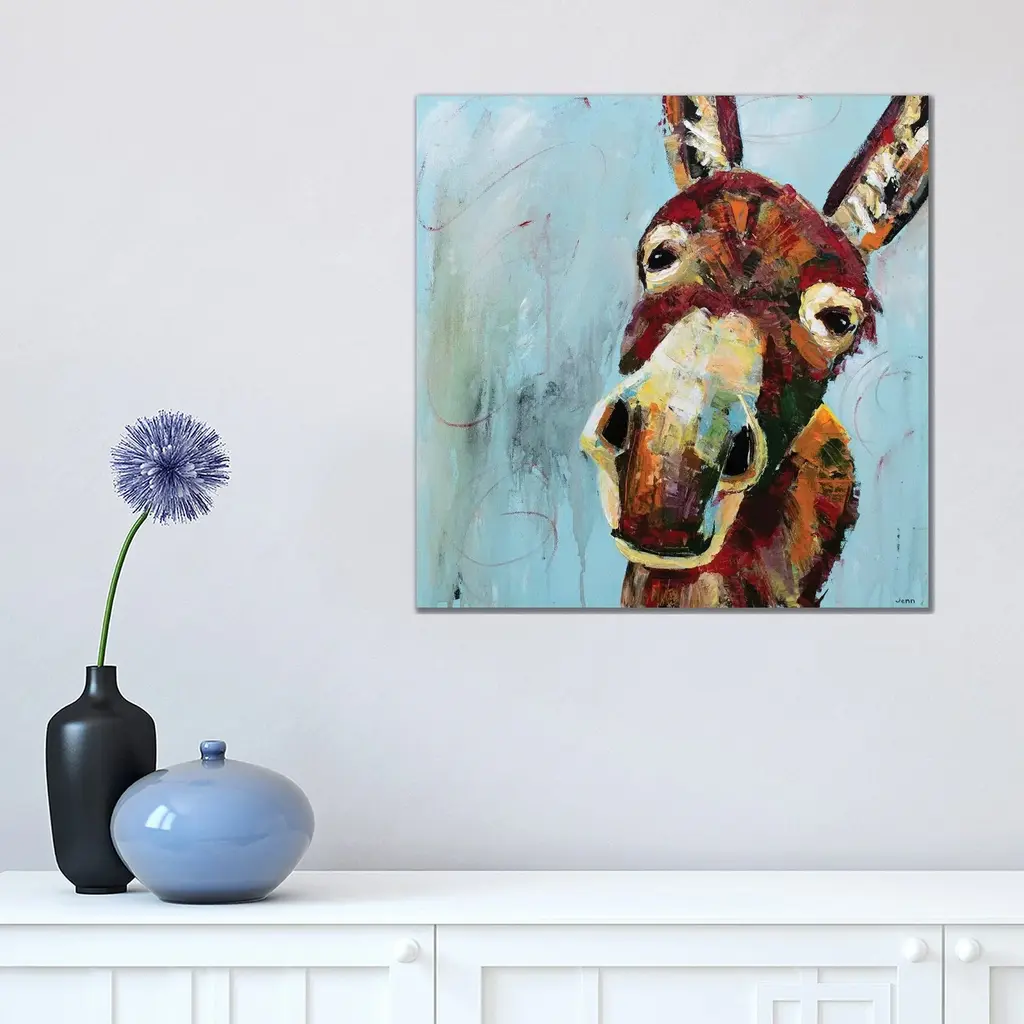 Icanvas "Funny Donkey" By Jennifer Seeley Canvas Print - 12x12x0.75