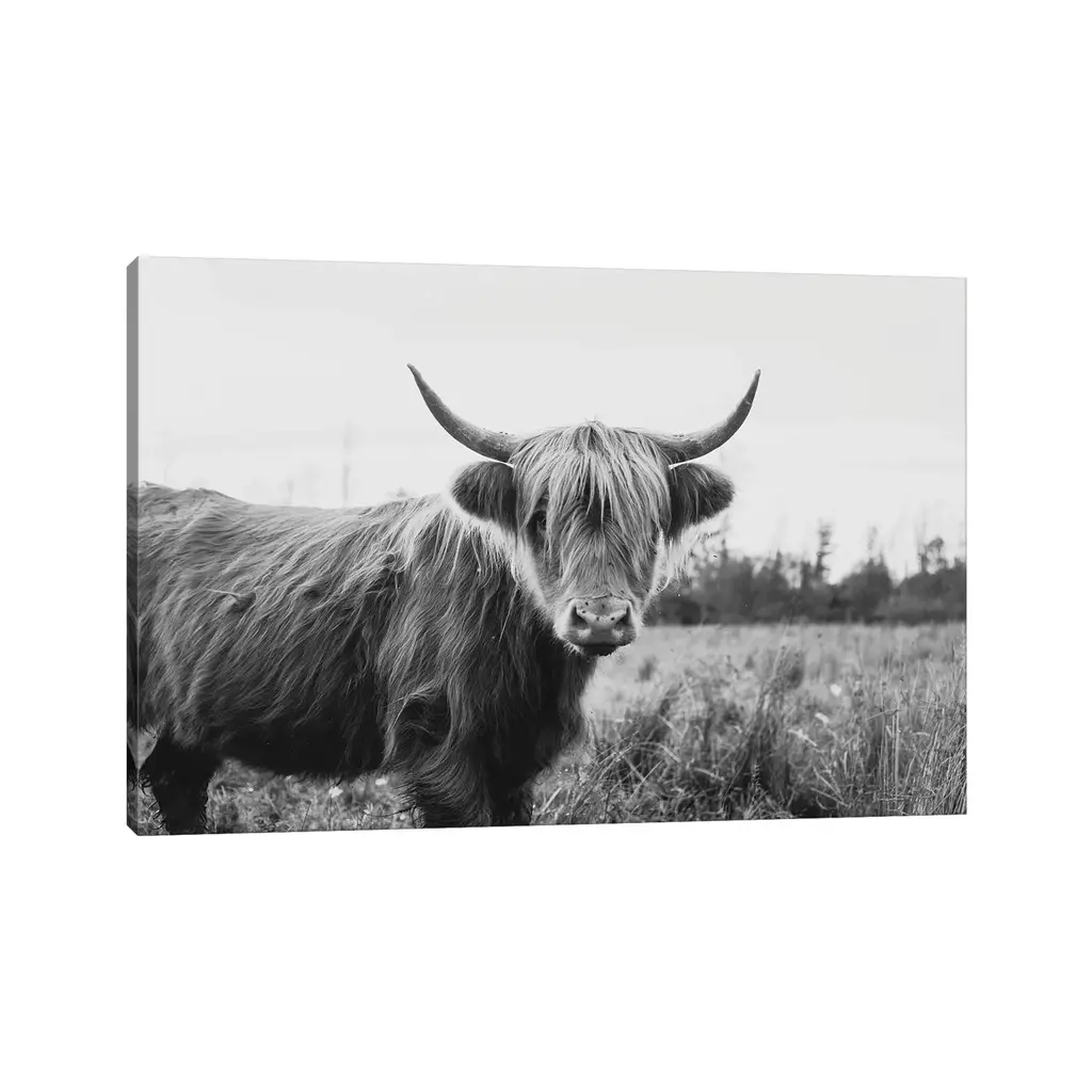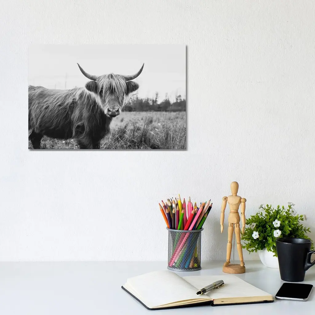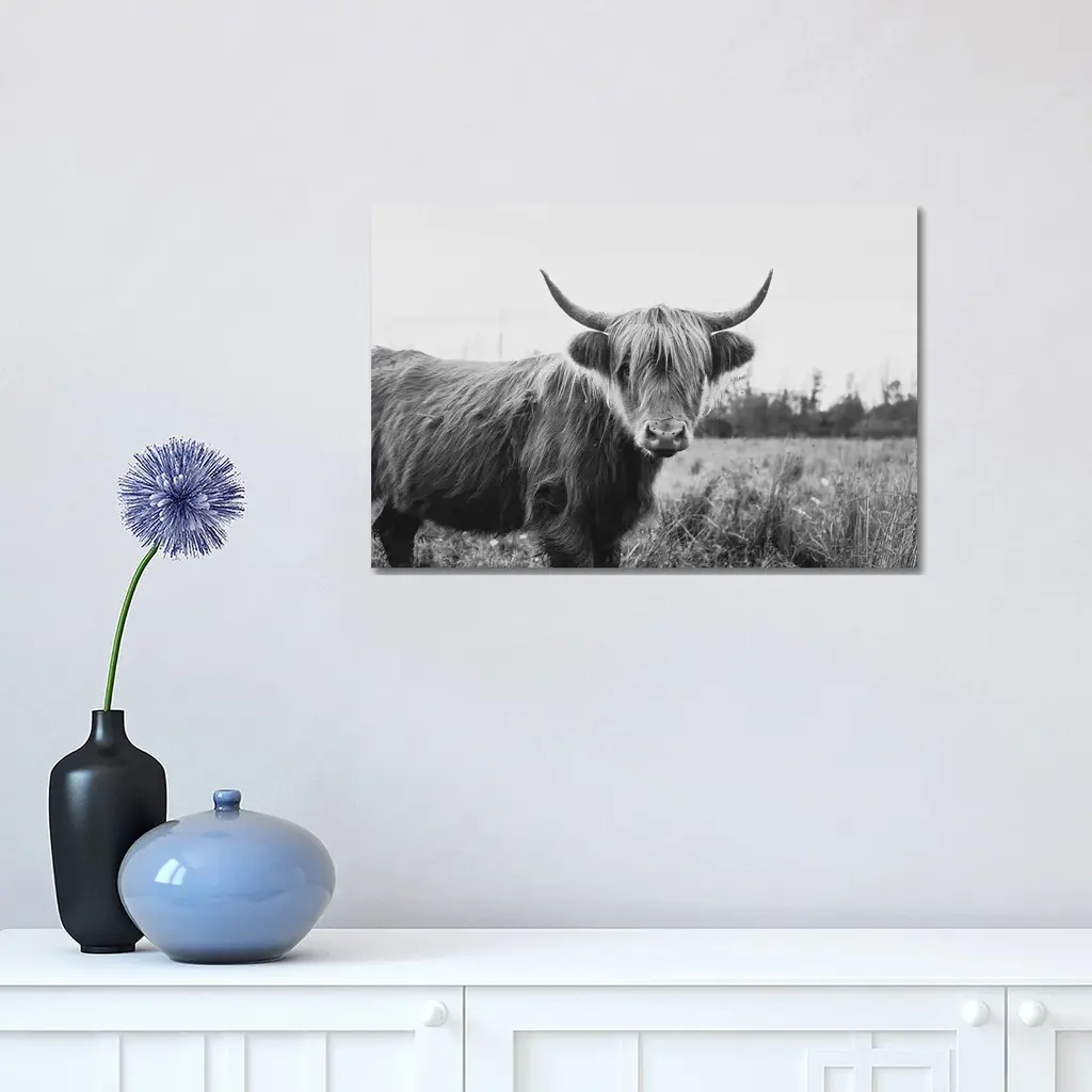 Icanvas "Furry Highland Cow Black And White" By Chelsea Victoria Canvas Print - 18x26x1.5