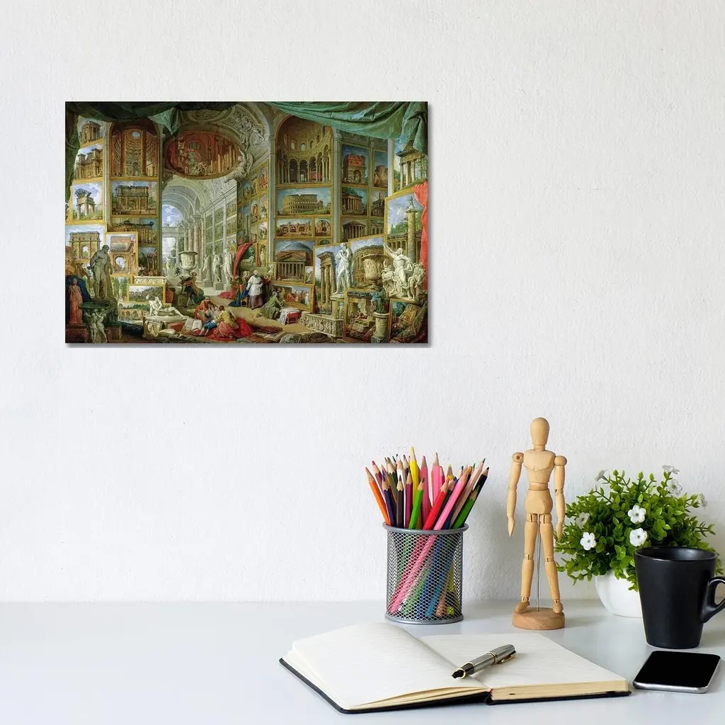 Icanvas "Gallery Of Views Of Ancient Rome, 1758 " By Giovanni Paolo Panini Canvas Print - 12x18x1.5