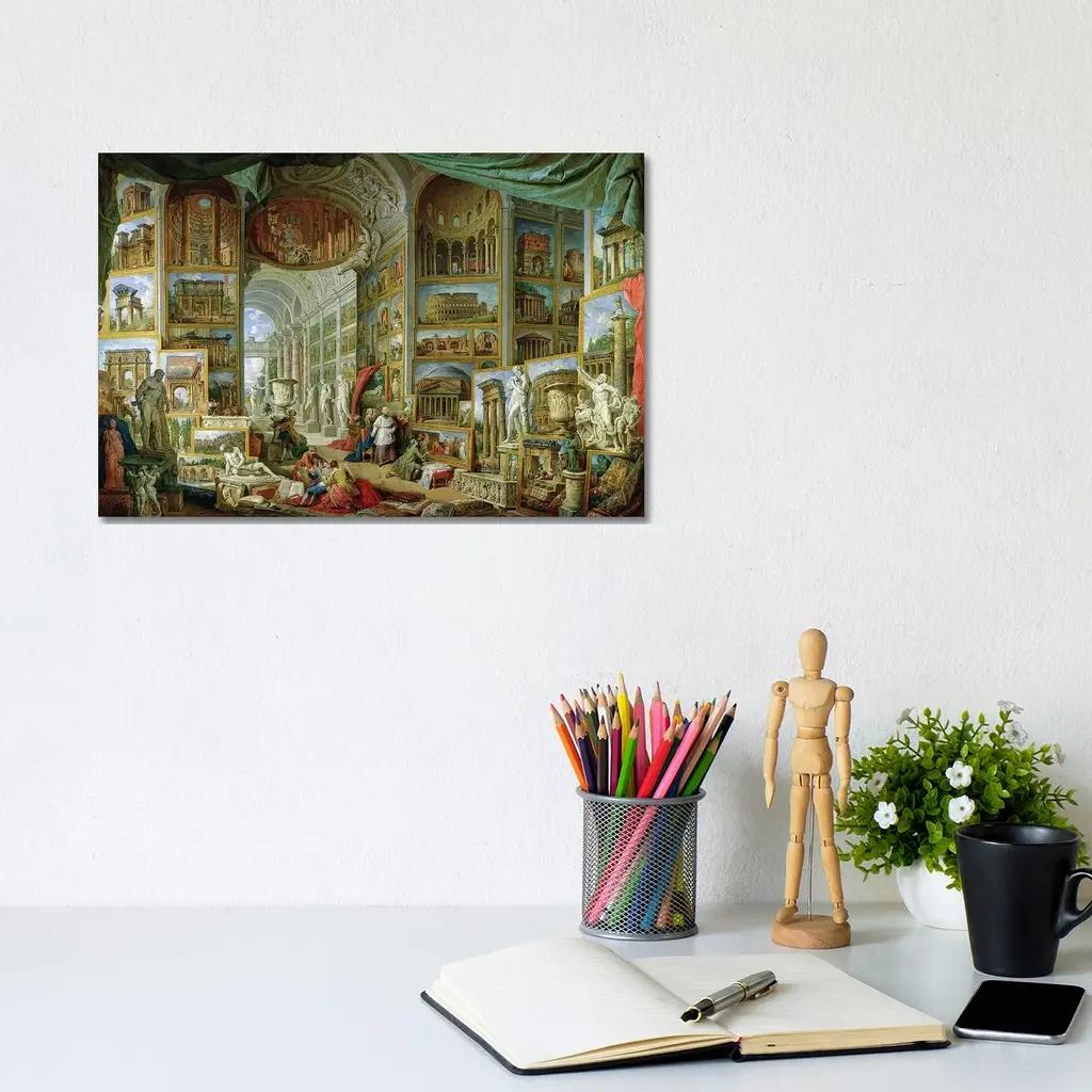 Icanvas "Gallery Of Views Of Ancient Rome, 1758 " By Giovanni Paolo Panini Canvas Print - 8X12x0.75