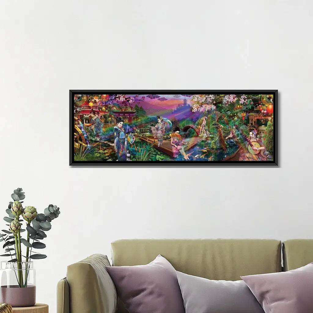 Icanvas "Geisha Garden" By Jumbie Framed Canvas Print - 16x48 - Black