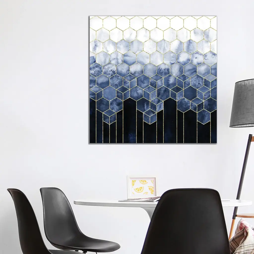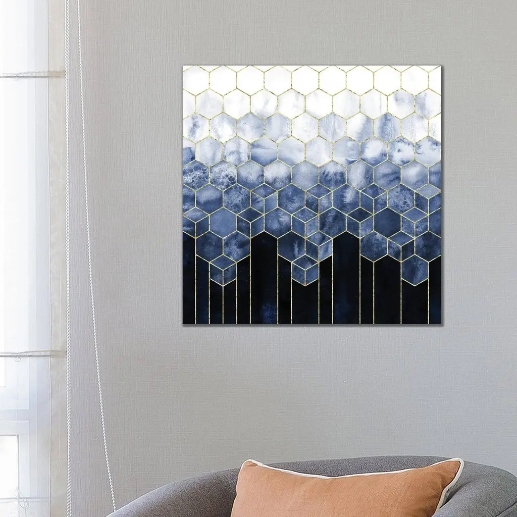 Icanvas "Geometric Cubes Modern Navy Blue And Gold Abstract Watercolor" By Nature Magick Canvas Print - 12x12x0.75