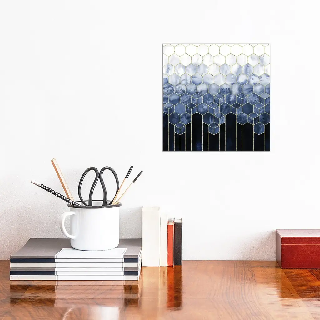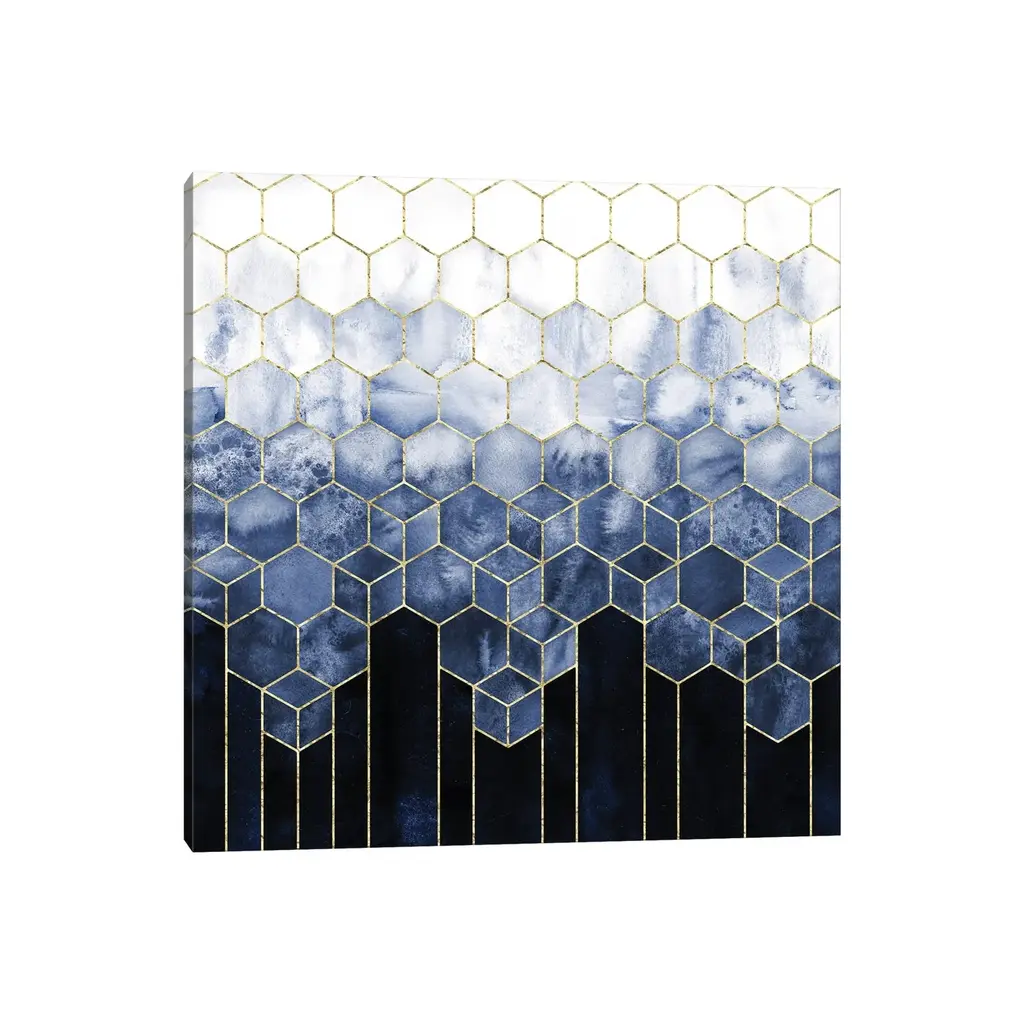Icanvas "Geometric Cubes Modern Navy Blue And Gold Abstract Watercolor" By Nature Magick Canvas Print - 12x12x1.5