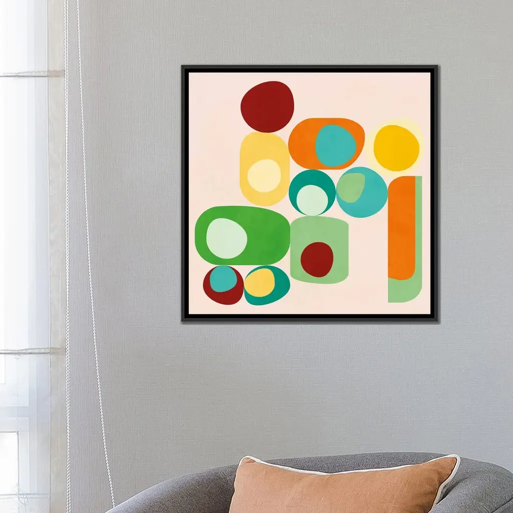 Icanvas "Geometric Mid Century Modern Summer" By Ana Rut Bre Framed - Gold - 26x26