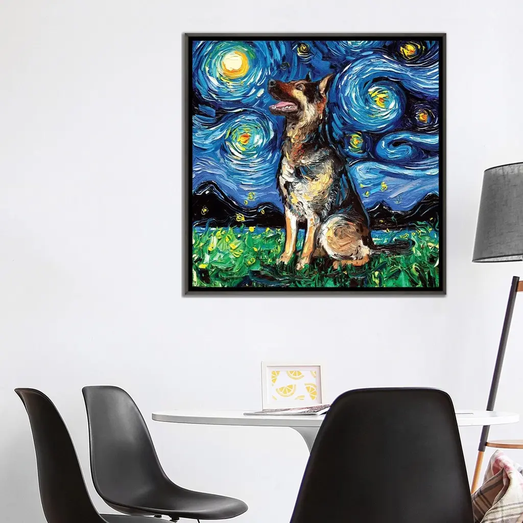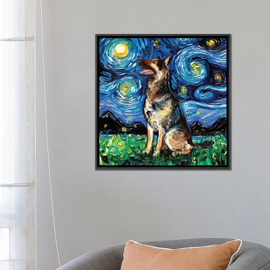 Icanvas "German Shepherd Night Ii" By Aja Trier Framed - 18x18 - Charcoal
