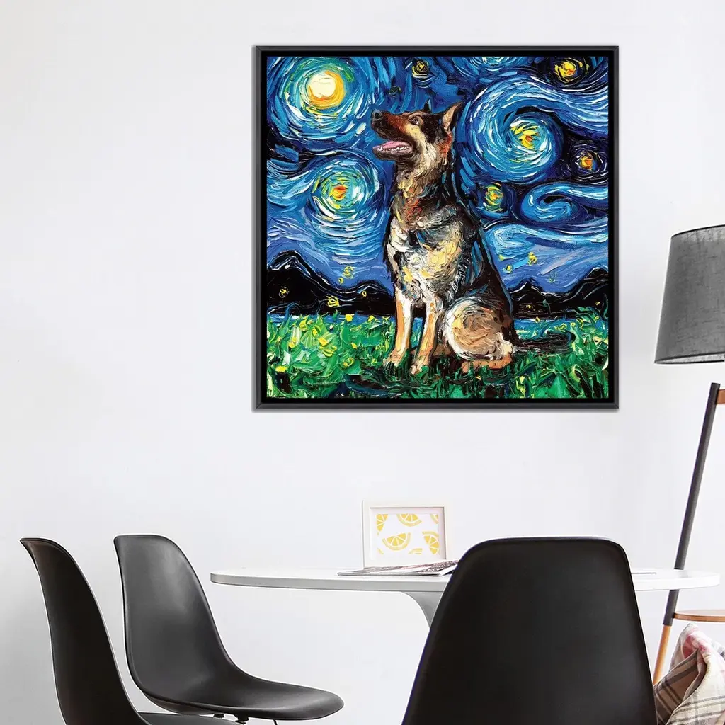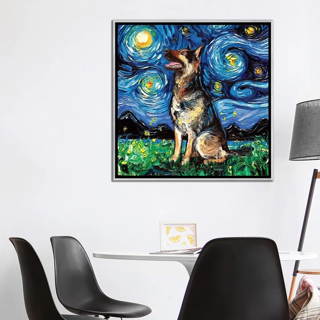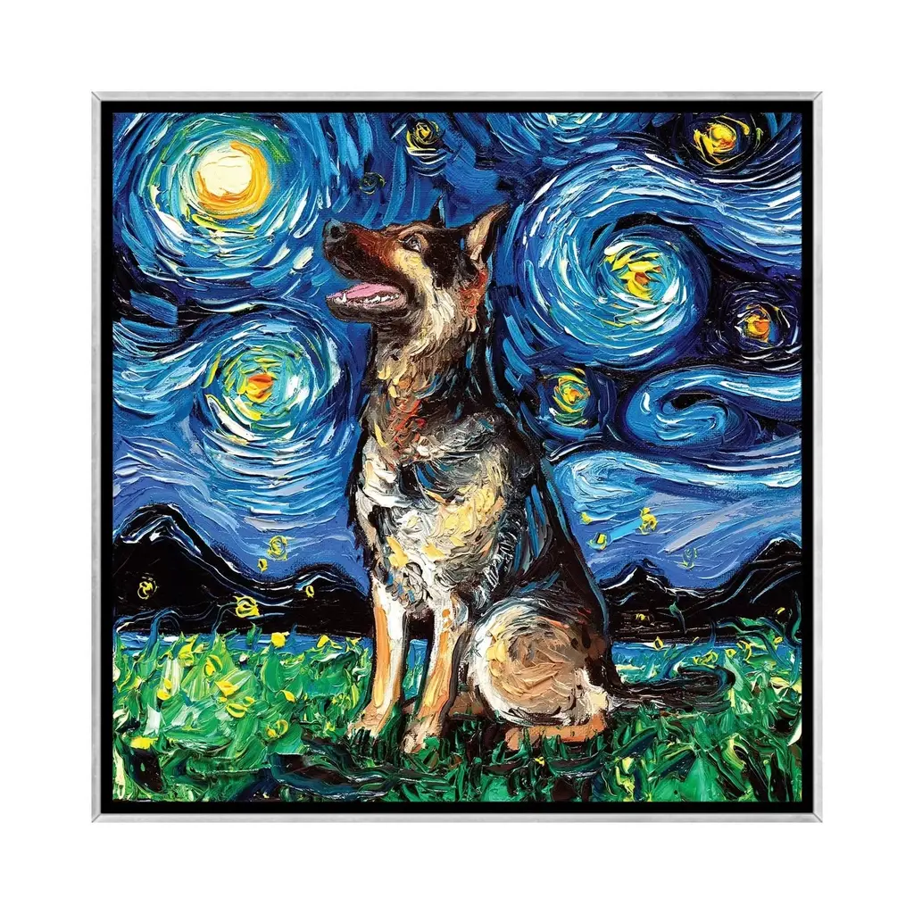 Icanvas "German Shepherd Night Ii" By Aja Trier Framed - 26x26 - Charcoal