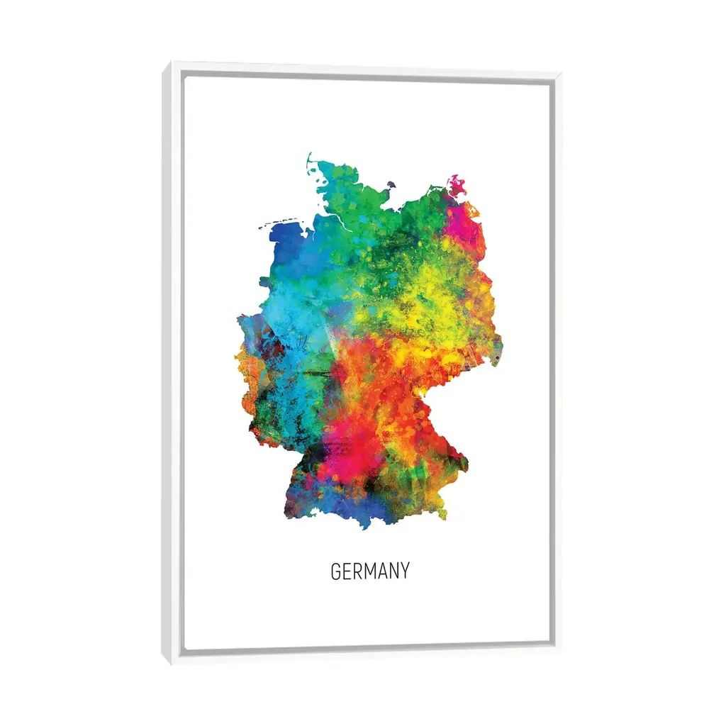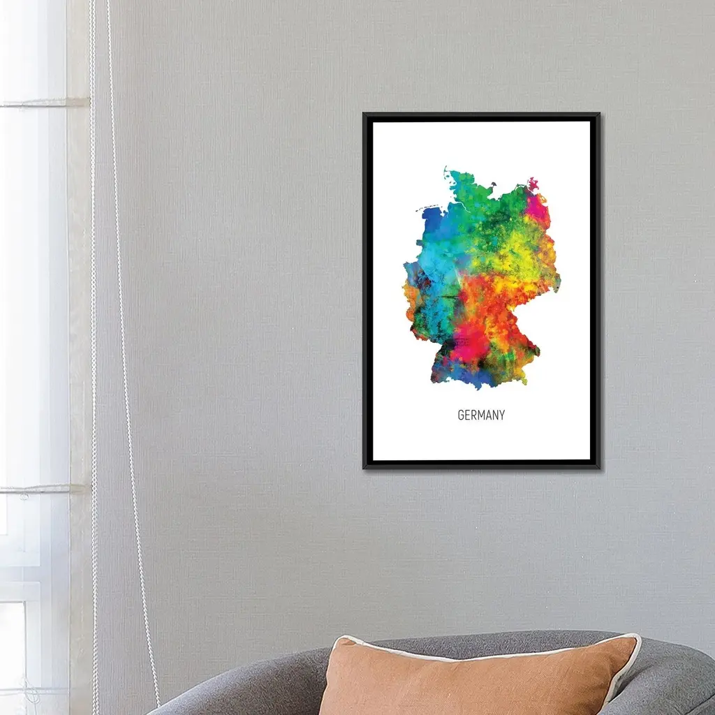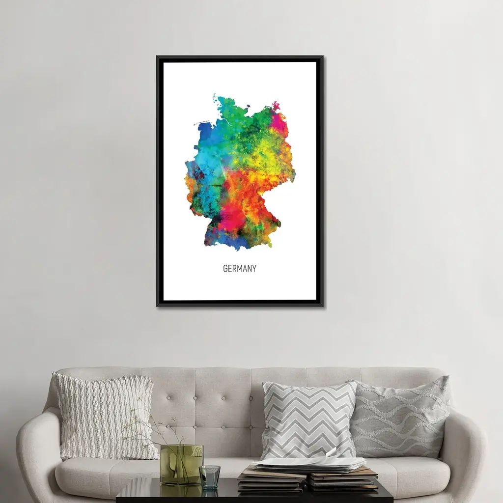 Icanvas "Germany Map" By Michael Tompsett Framed Canvas Print - Black - 26x18
