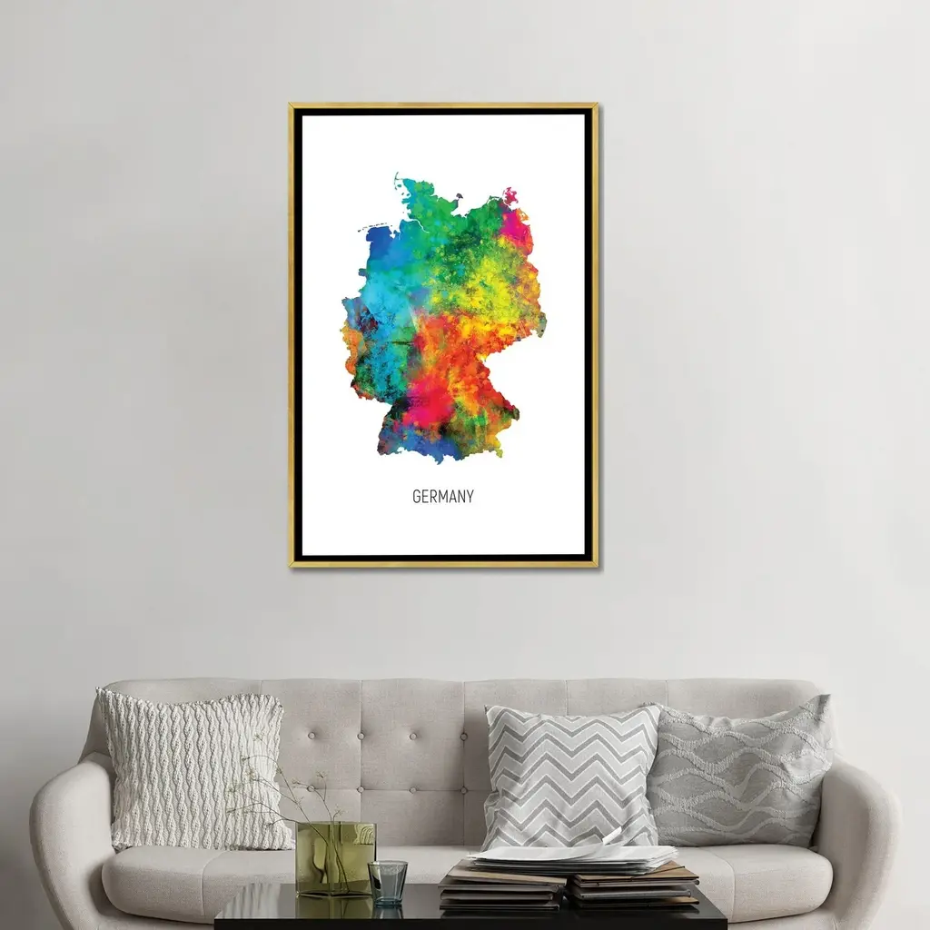 Icanvas "Germany Map" By Michael Tompsett Framed Canvas Print - Gold - 48x32