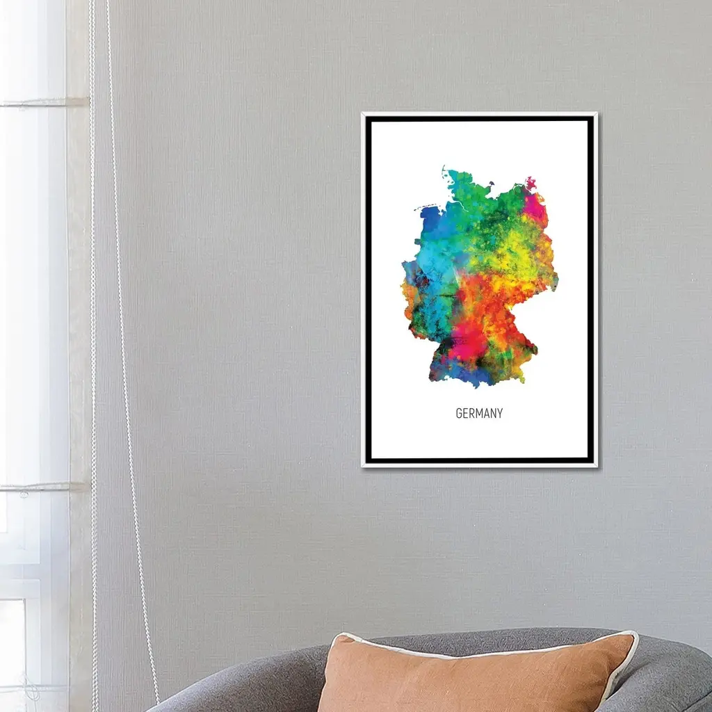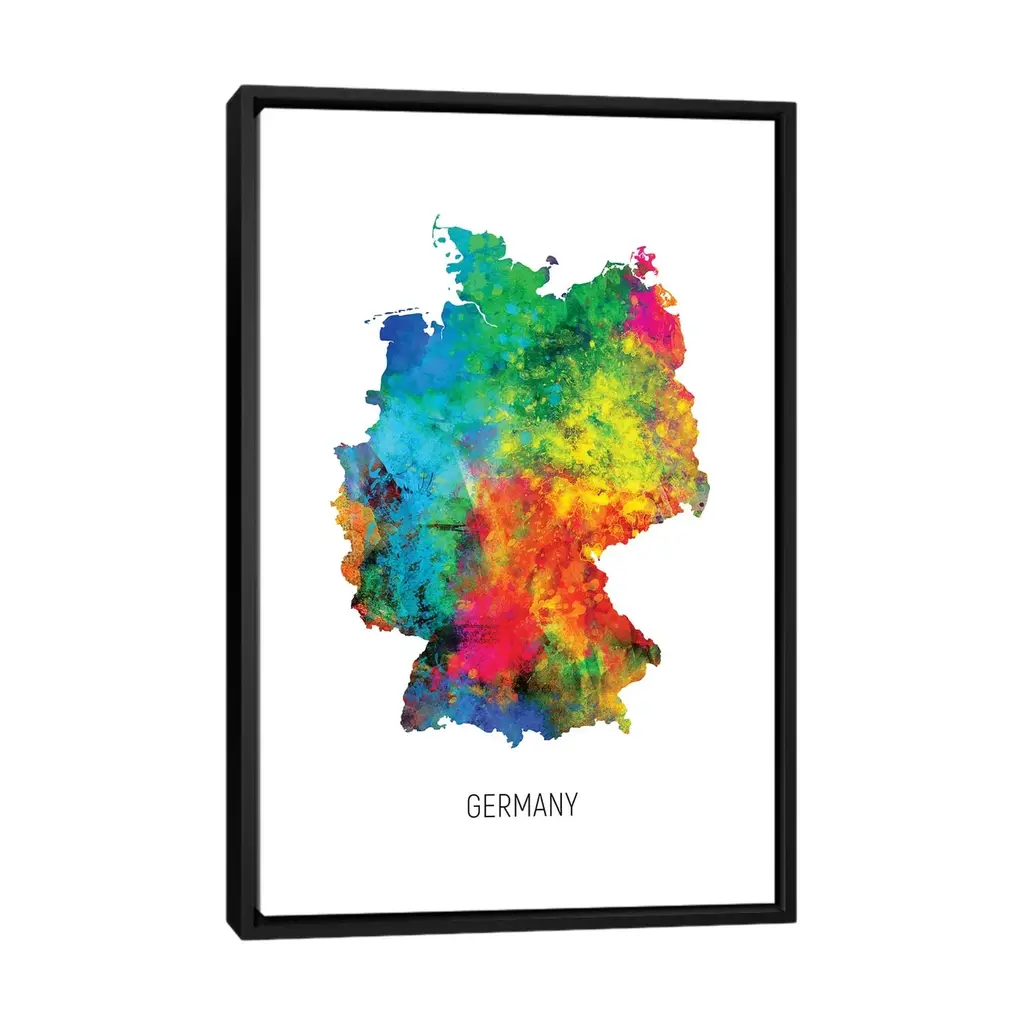 Icanvas "Germany Map" By Michael Tompsett Framed Canvas Print - White - 40x26