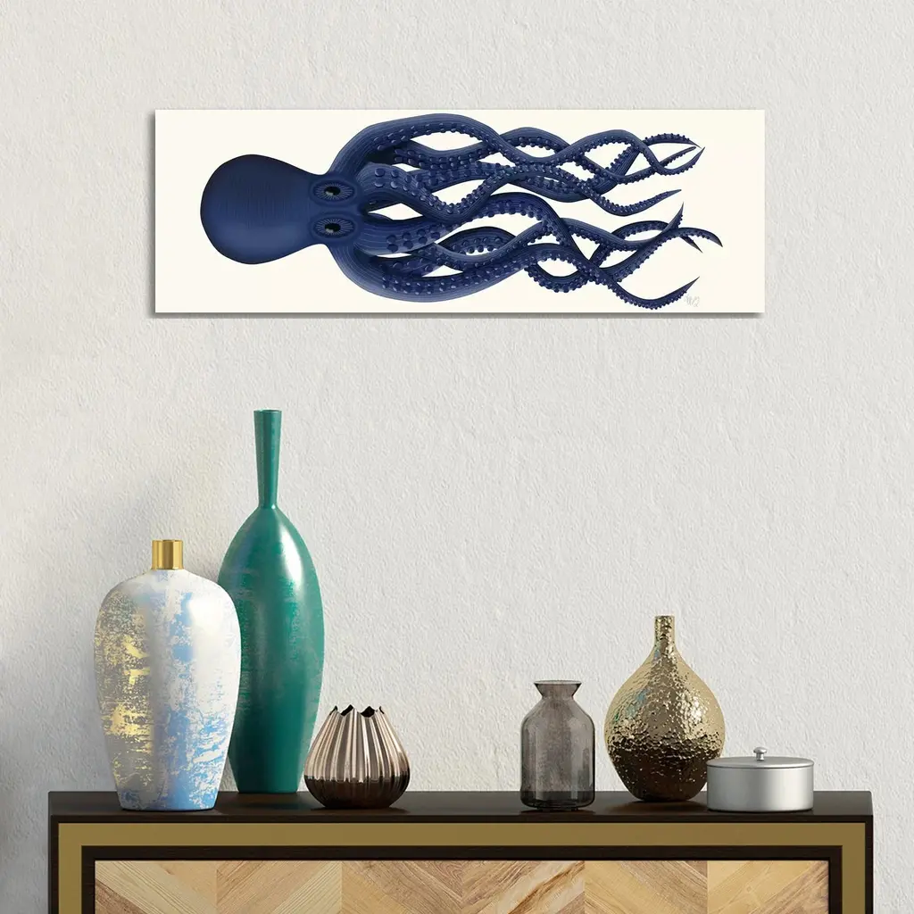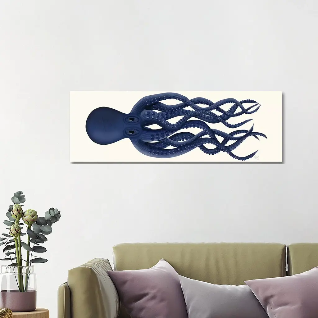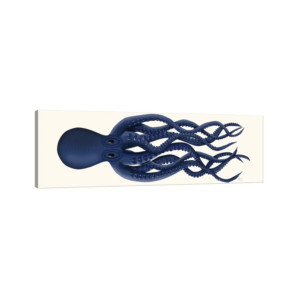 Icanvas "Giant Octopus Blue Panoramic" By Fab Funky Canvas Print - 12x36x1.5