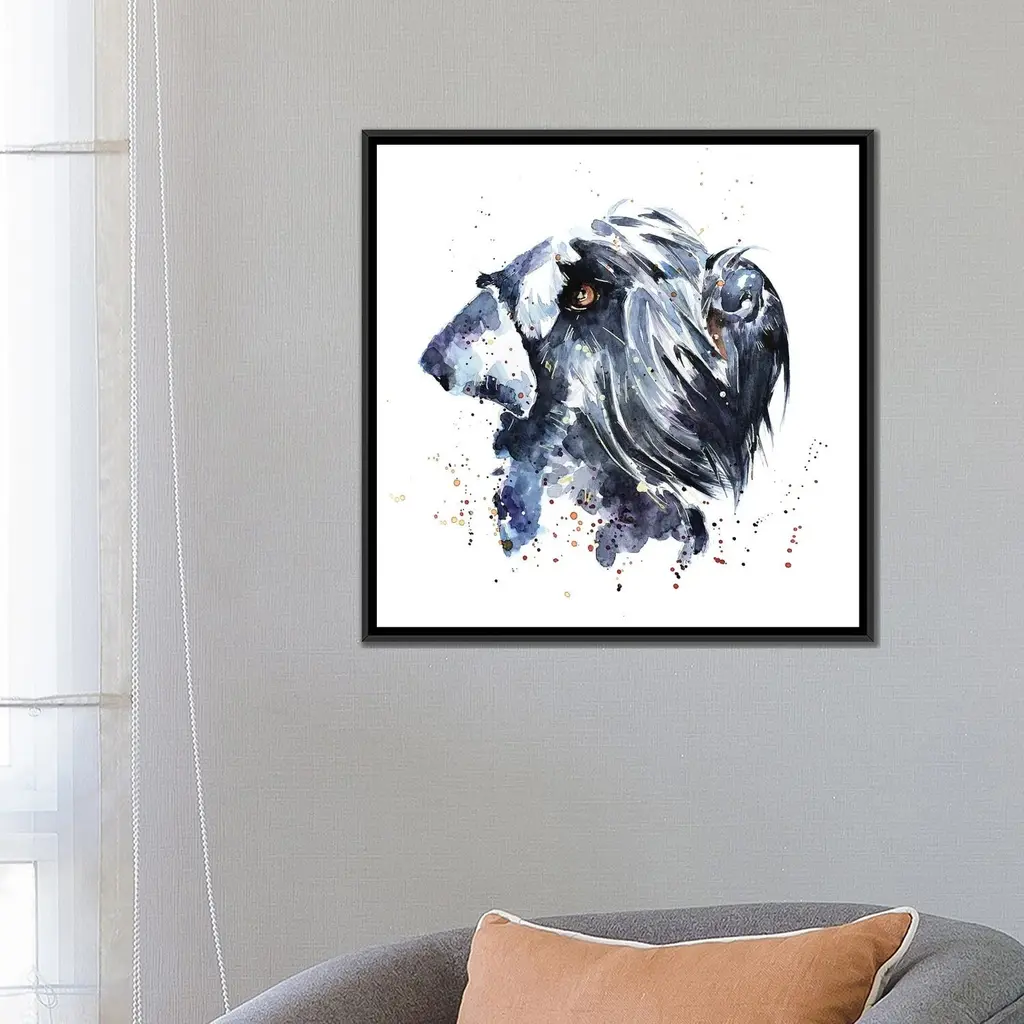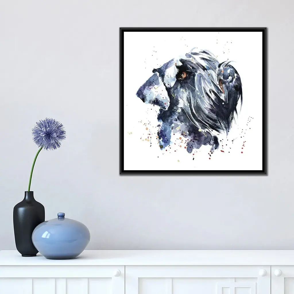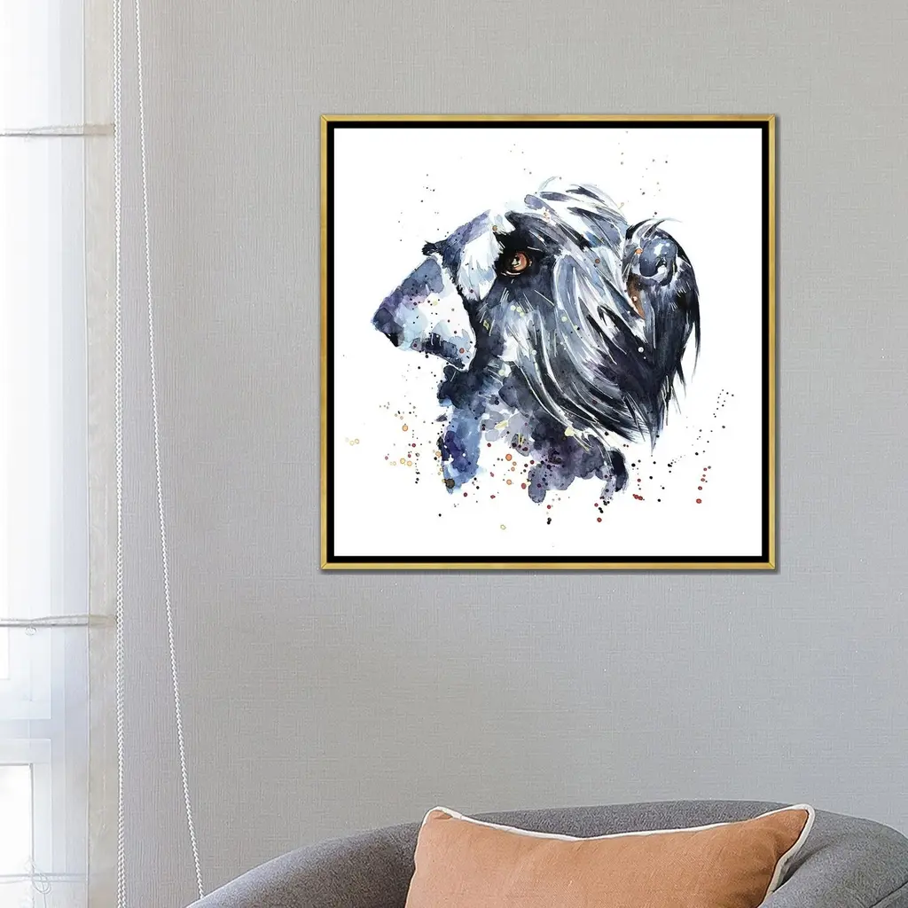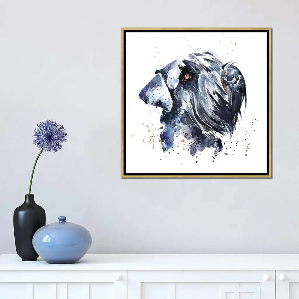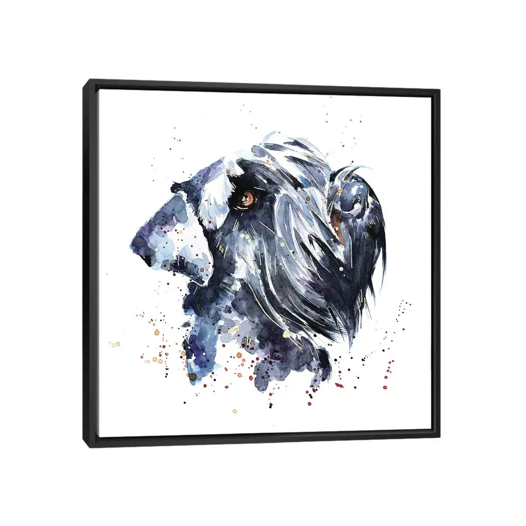 Icanvas "Giant Schnauzer" By Edswatercolours Framed Canvas Print - Gold - 12x12