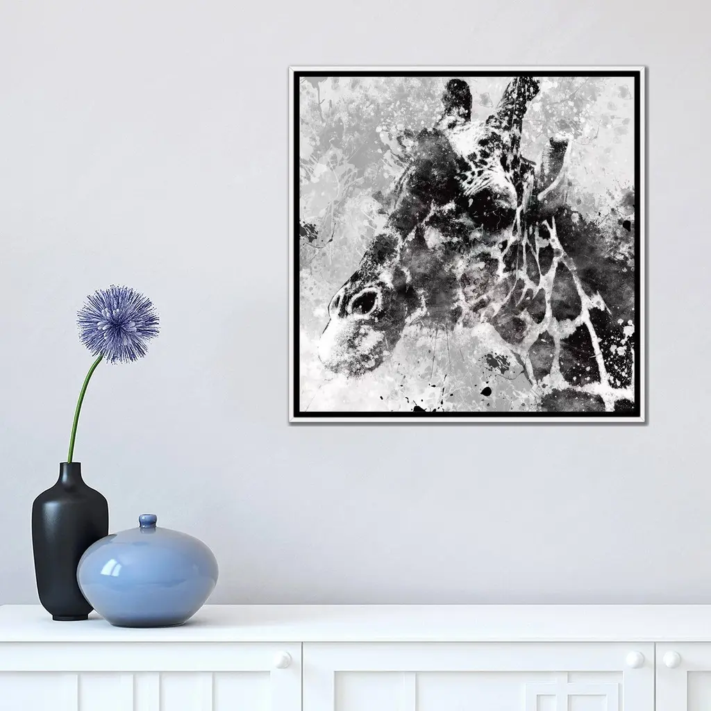 Icanvas "Giraffe" By Carol Robinson Framed Canvas Print - Black - 12x12
