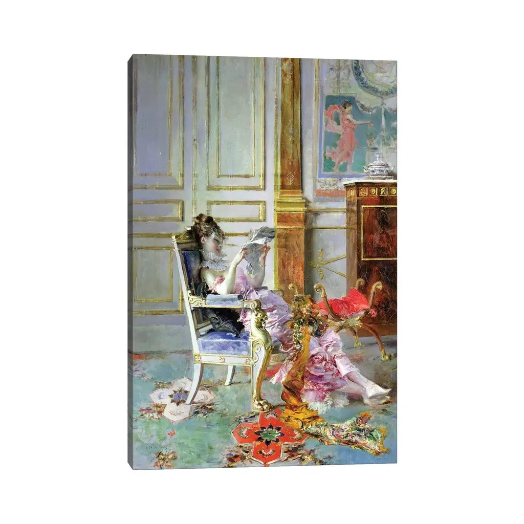 Icanvas "Girl Reading In A Salon, 1876" By Giovanni Boldini Canvas Print - 26x18x1.5