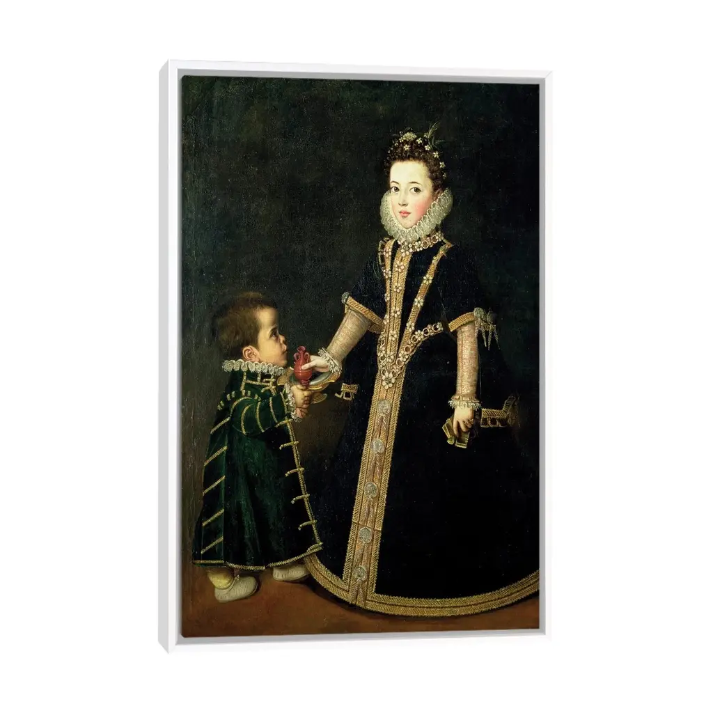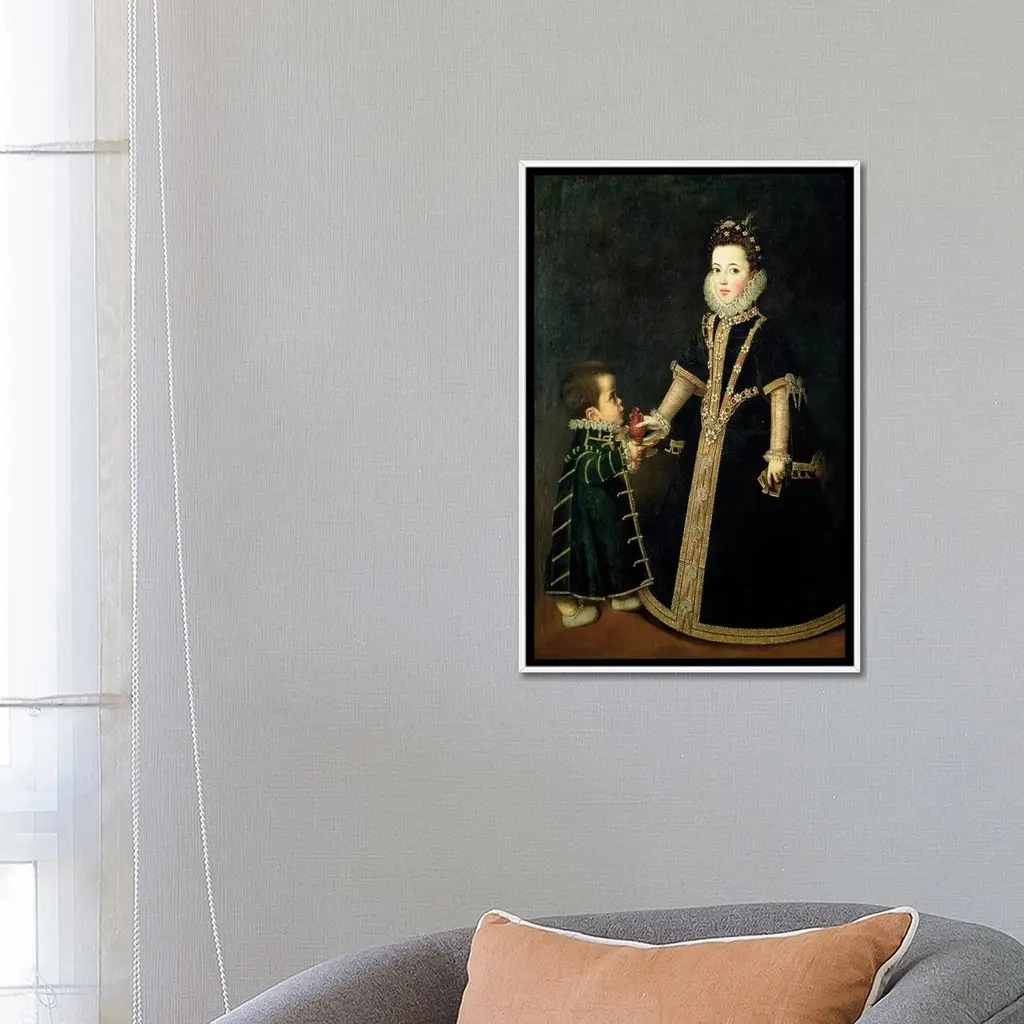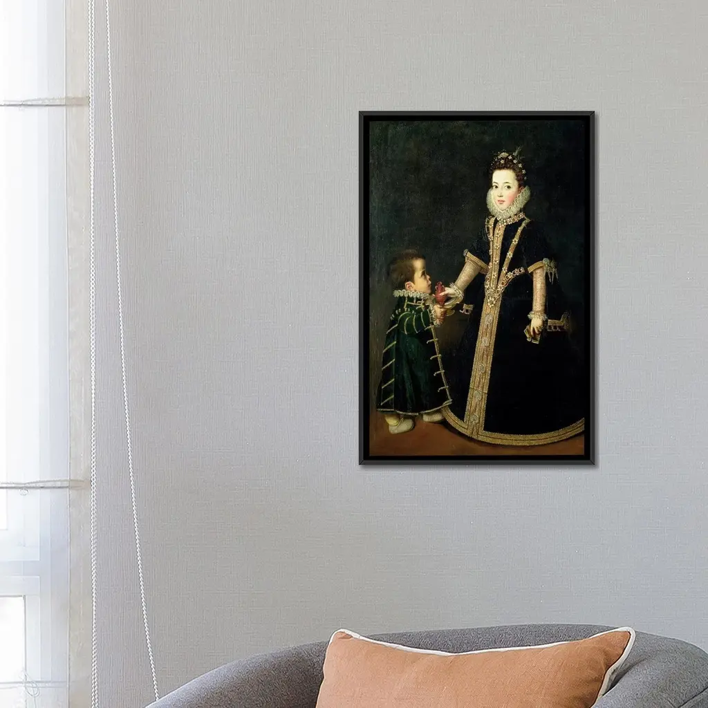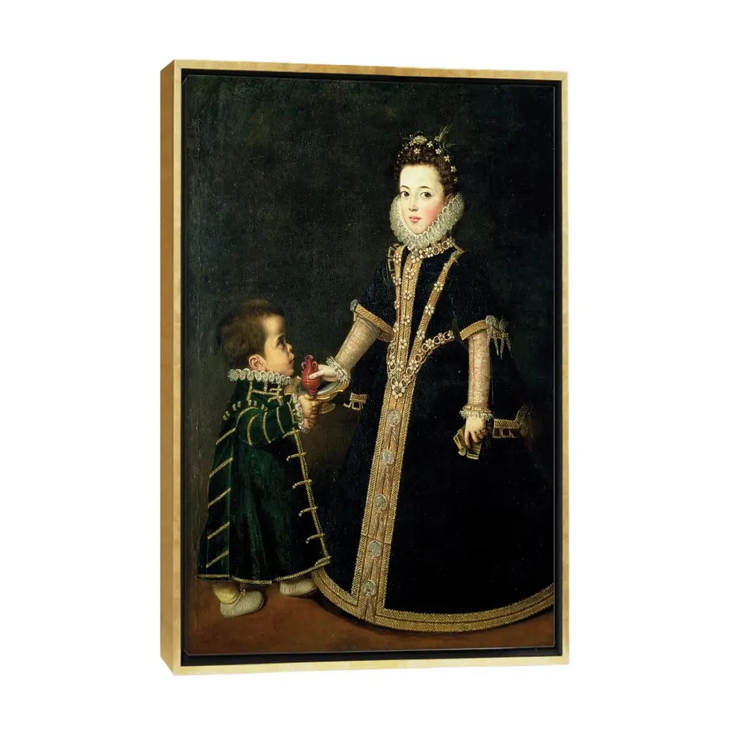 Icanvas "Girl With A Dwarf, Daughter Of The Duke And Duchess Of Savoy, C.1595" By Sofonisba Anguissola Framed - Gold - 26x18