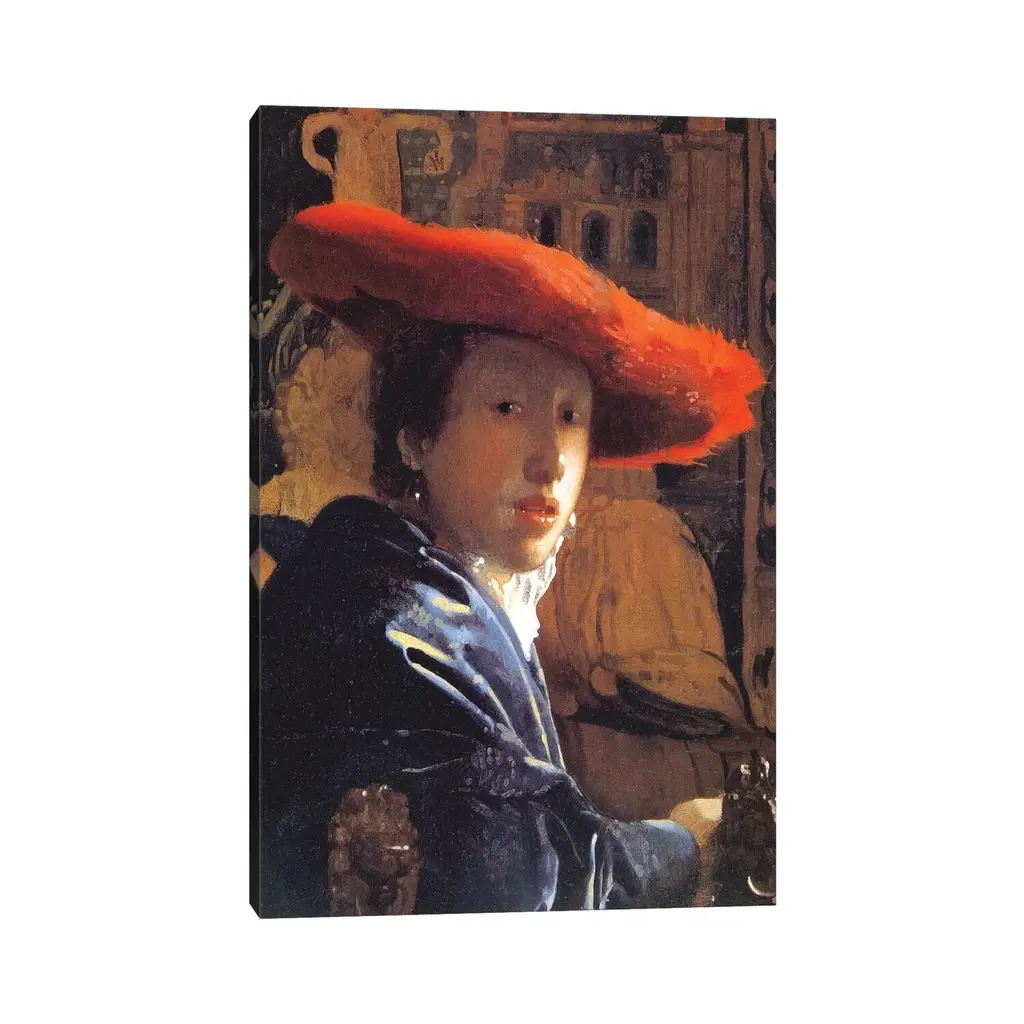 Icanvas "Girl With A Red Hat, C.1665" By Johannes Vermeer Canvas Print - 12x8x0.75