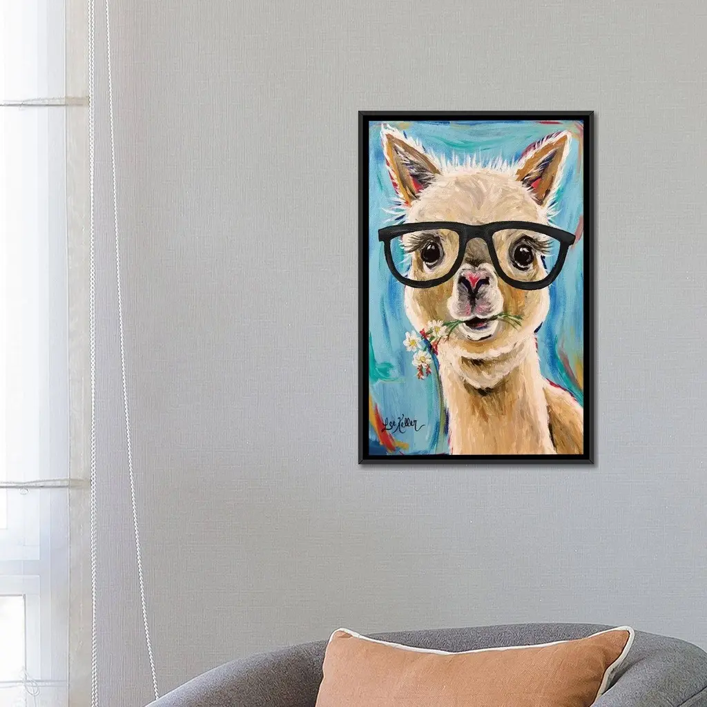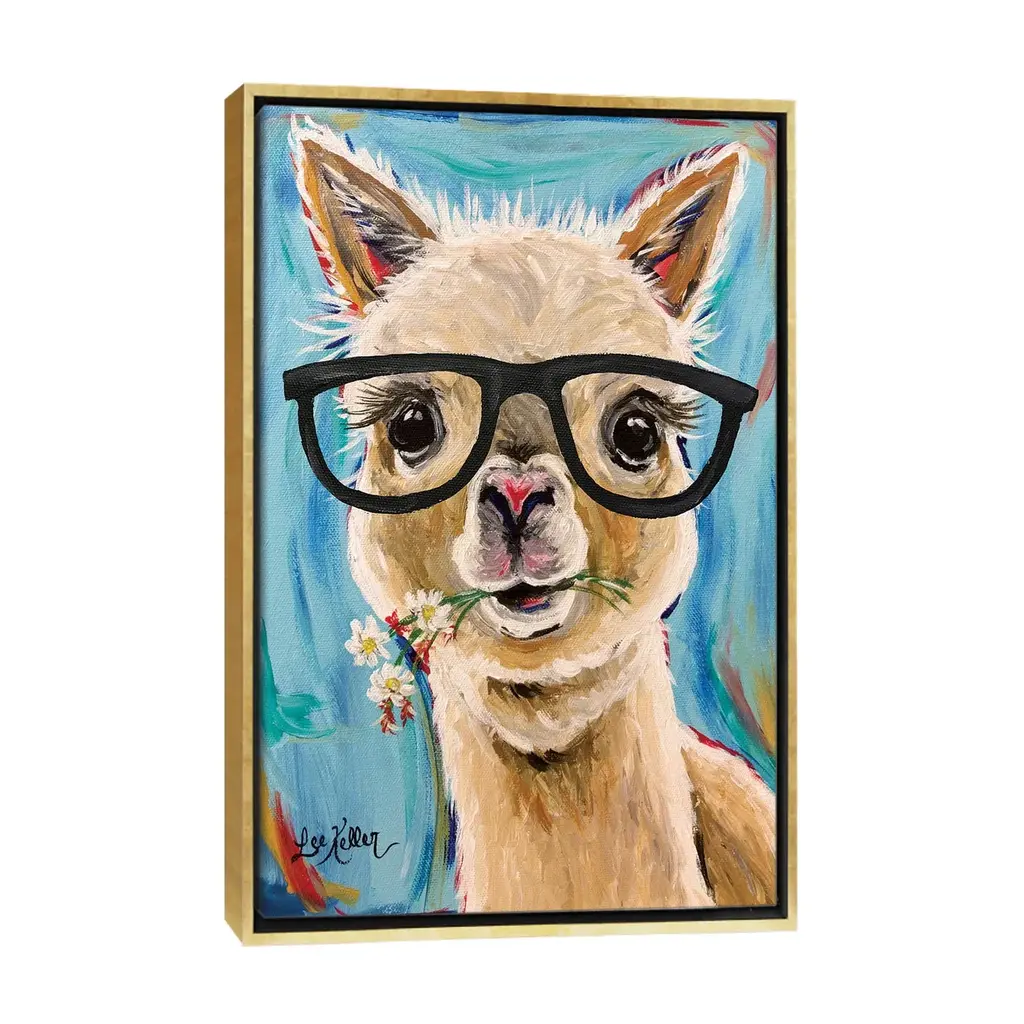 Icanvas " Glasses " By Hippie Hound Studios Framed Canvas Print - Gold - 26x18
