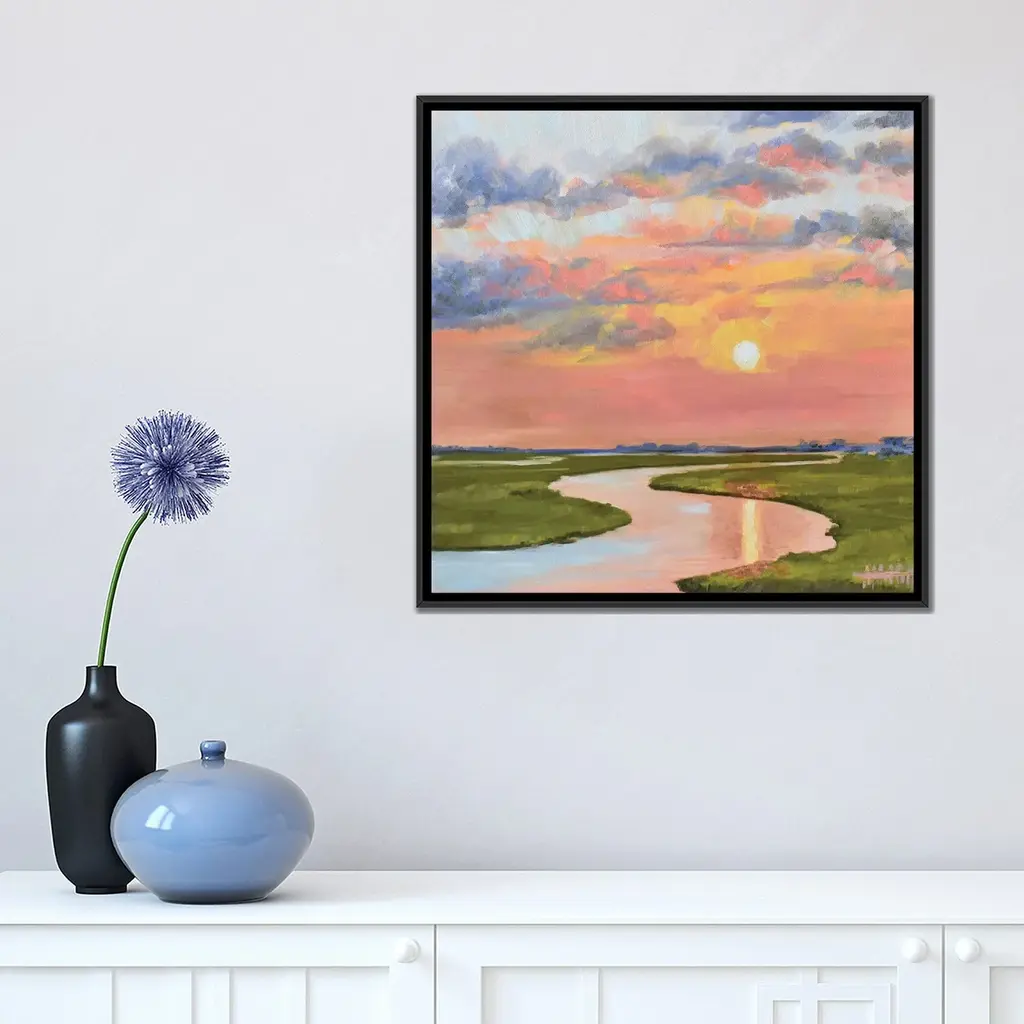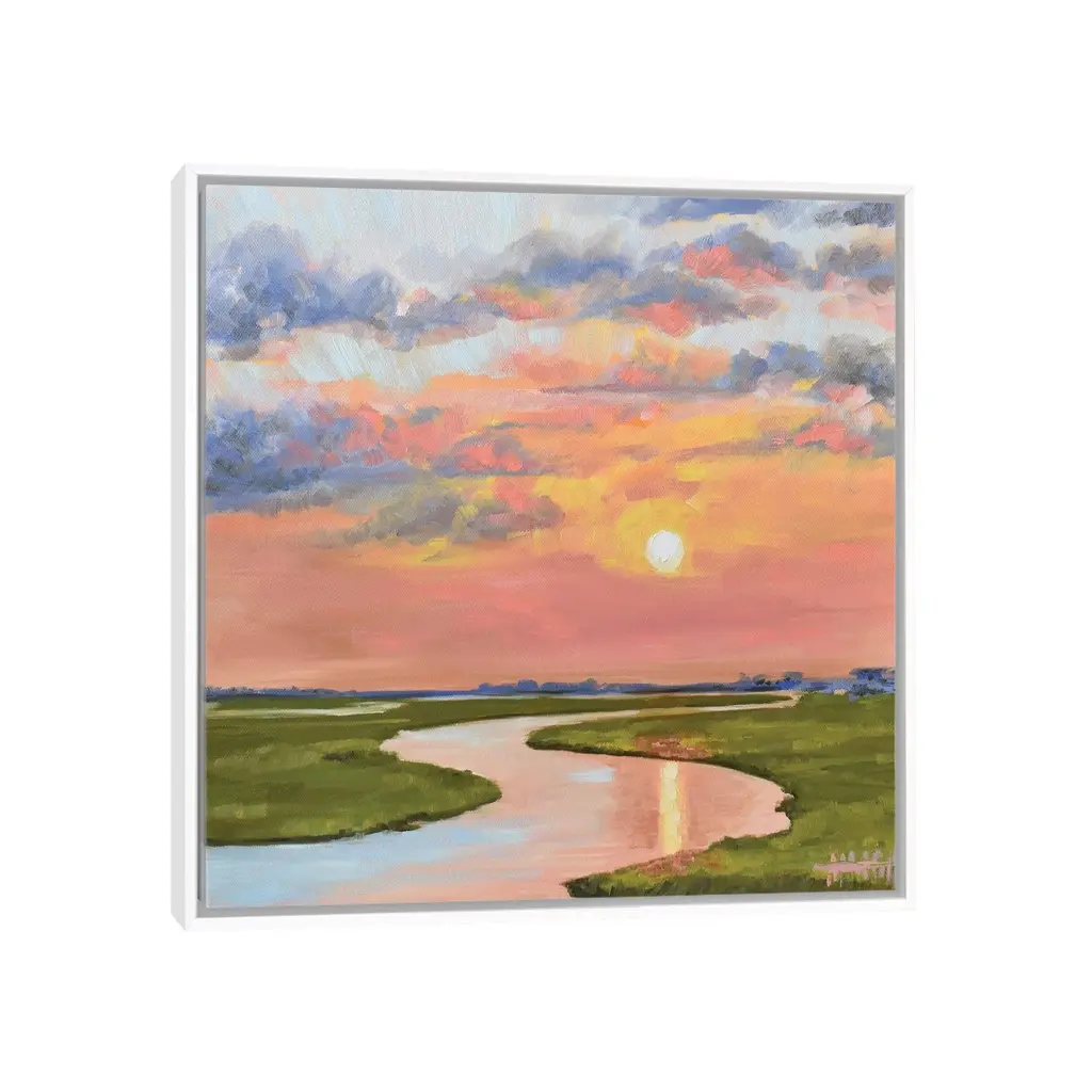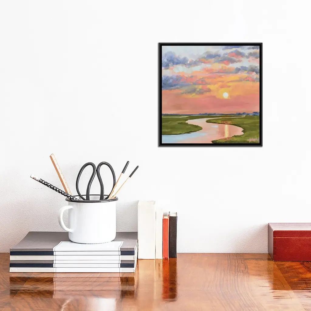 Icanvas "Glassy Waters On The Marsh" By April Moffatt Framed Canvas Print - White - 12x12