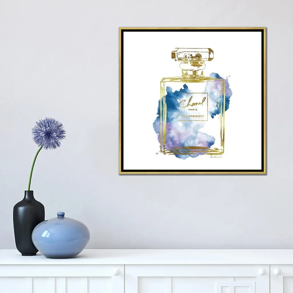 Icanvas "Gold And Blue Perfume Bottle" By Amanda Greenwood Framed Canvas Print - 18x18 - Gold