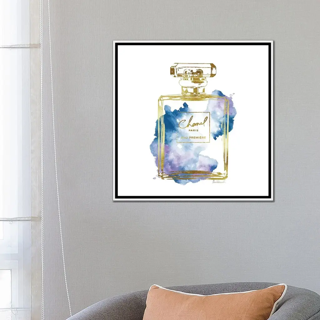 Icanvas "Gold And Blue Perfume Bottle" By Amanda Greenwood Framed Canvas Print - 26x26 - White